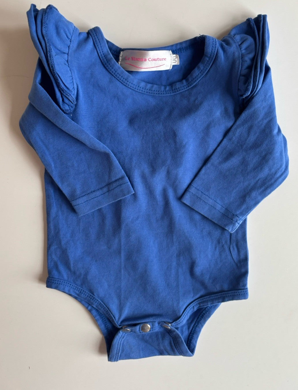 La Sienna Couture baby girl size 3-6 months blue bodysuit top, VGUC