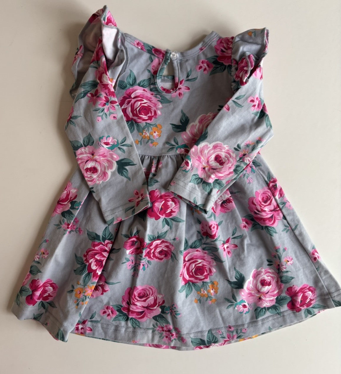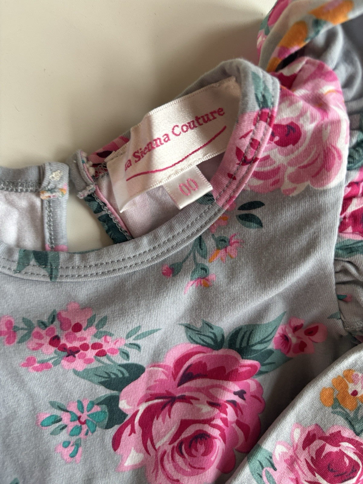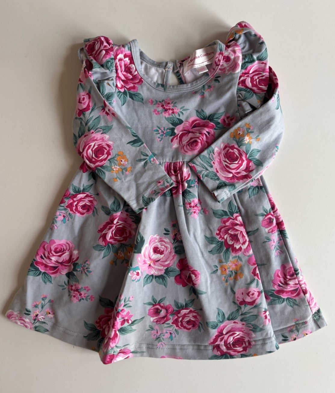La Sienna Couture baby girl size 3-6 months blue pink floral dress, VGUC