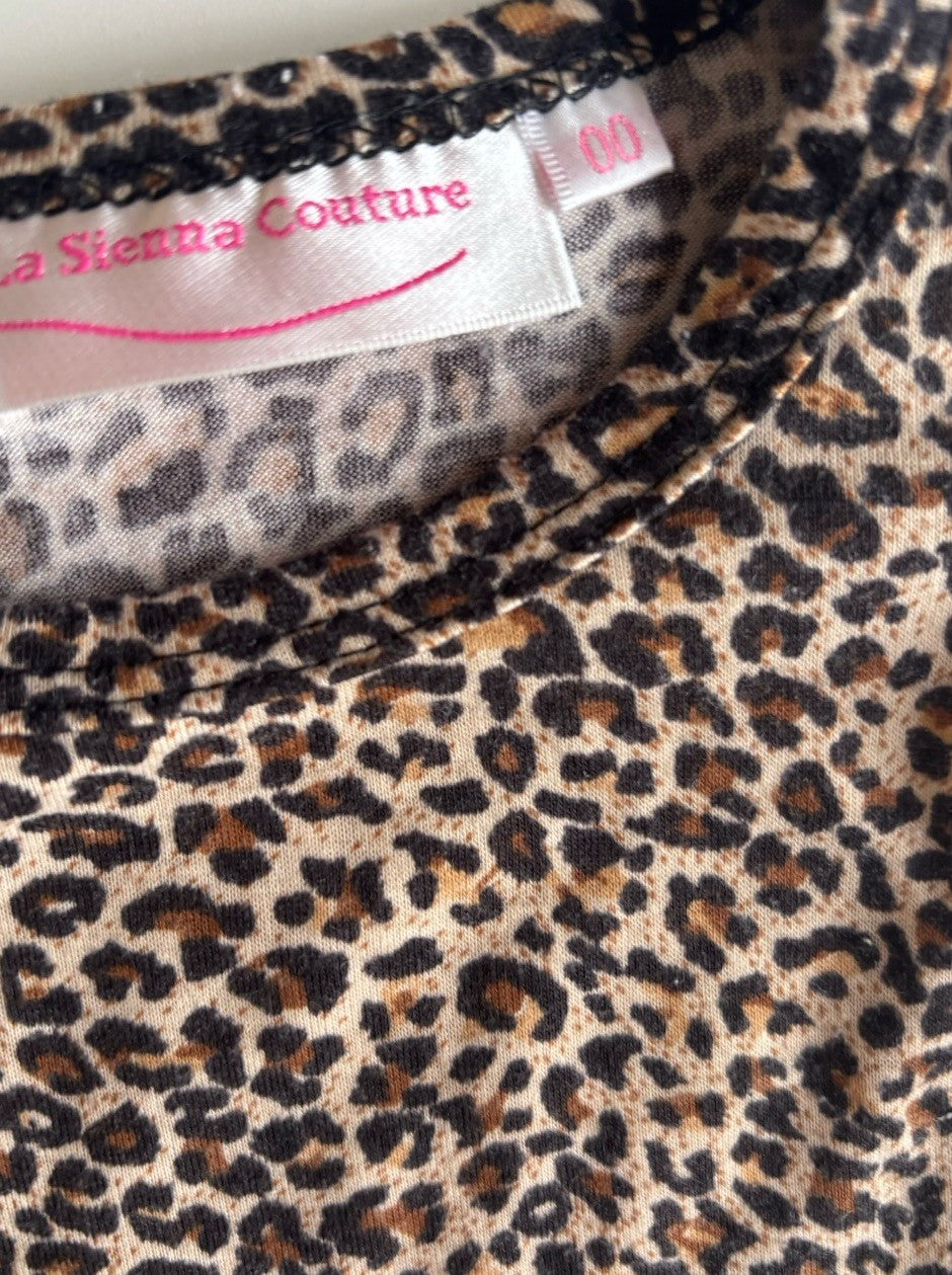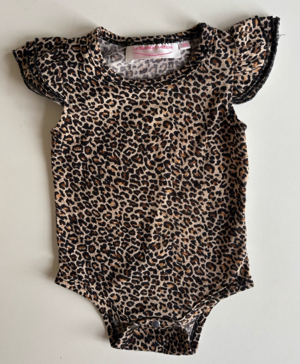 La Sienna Couture baby girl size 3-6 months brown leopard print bodysuit, VGUC