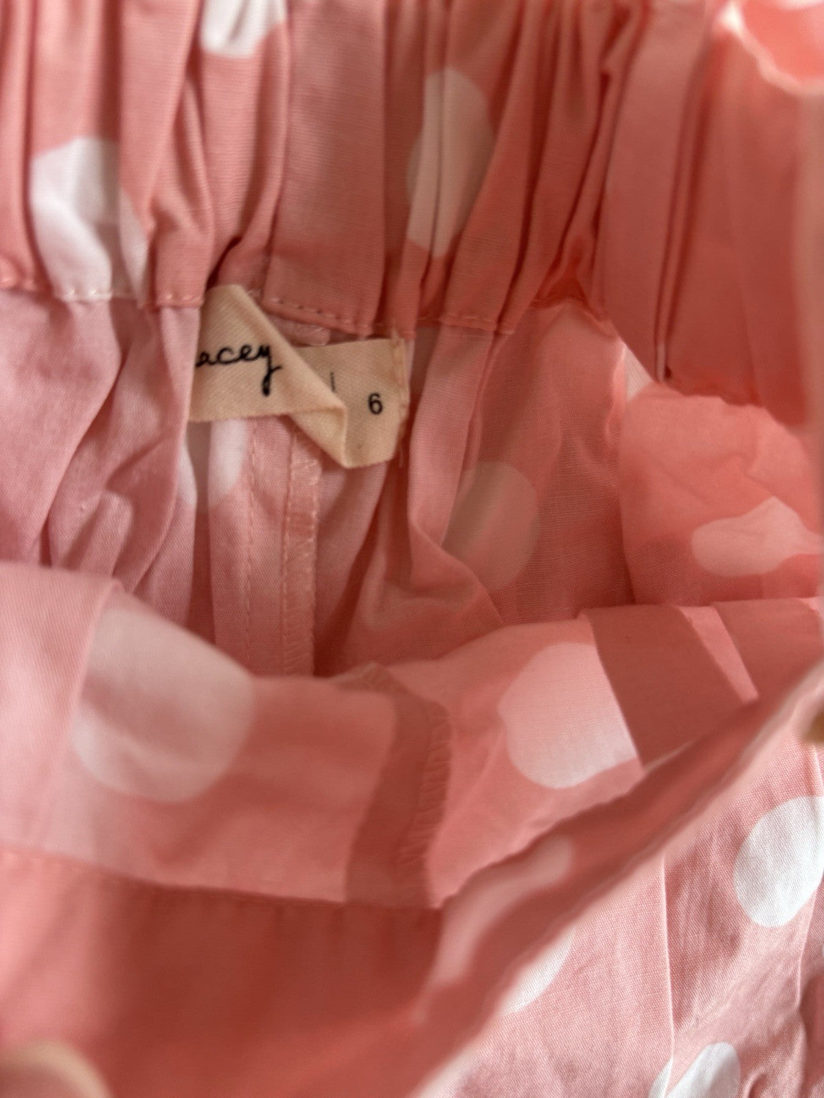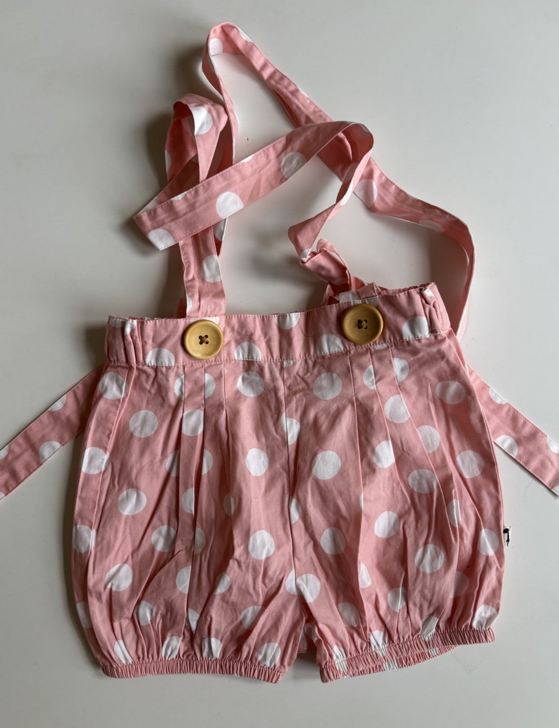 Lacey Lane kids girls size 6 pink white spot shorts suspenders, VGUC