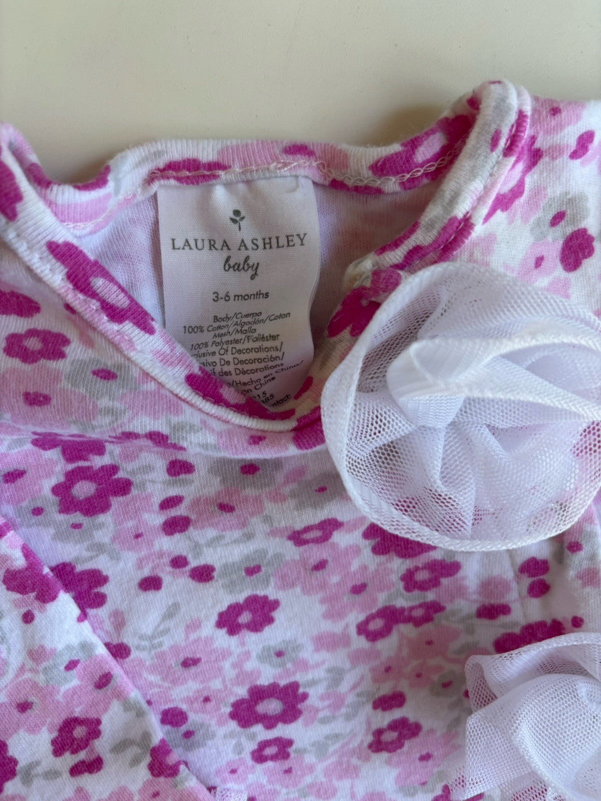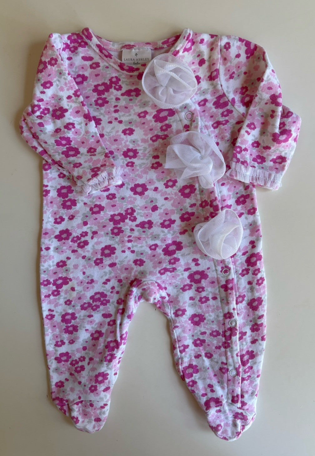 Laura Ashley baby girl size 3-6 months pink white floral one-piece, VGUC