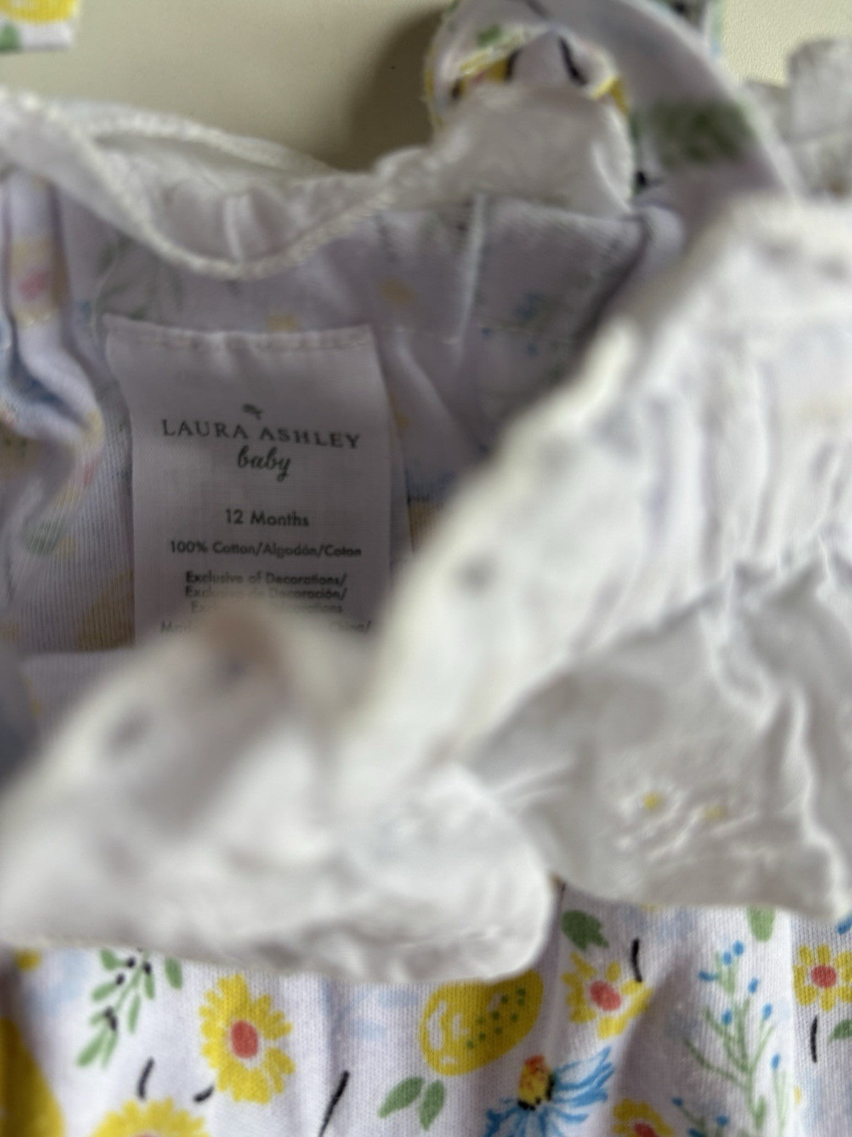 Laura Ashley baby girl size 9-12 months white yellow blue floral rompe