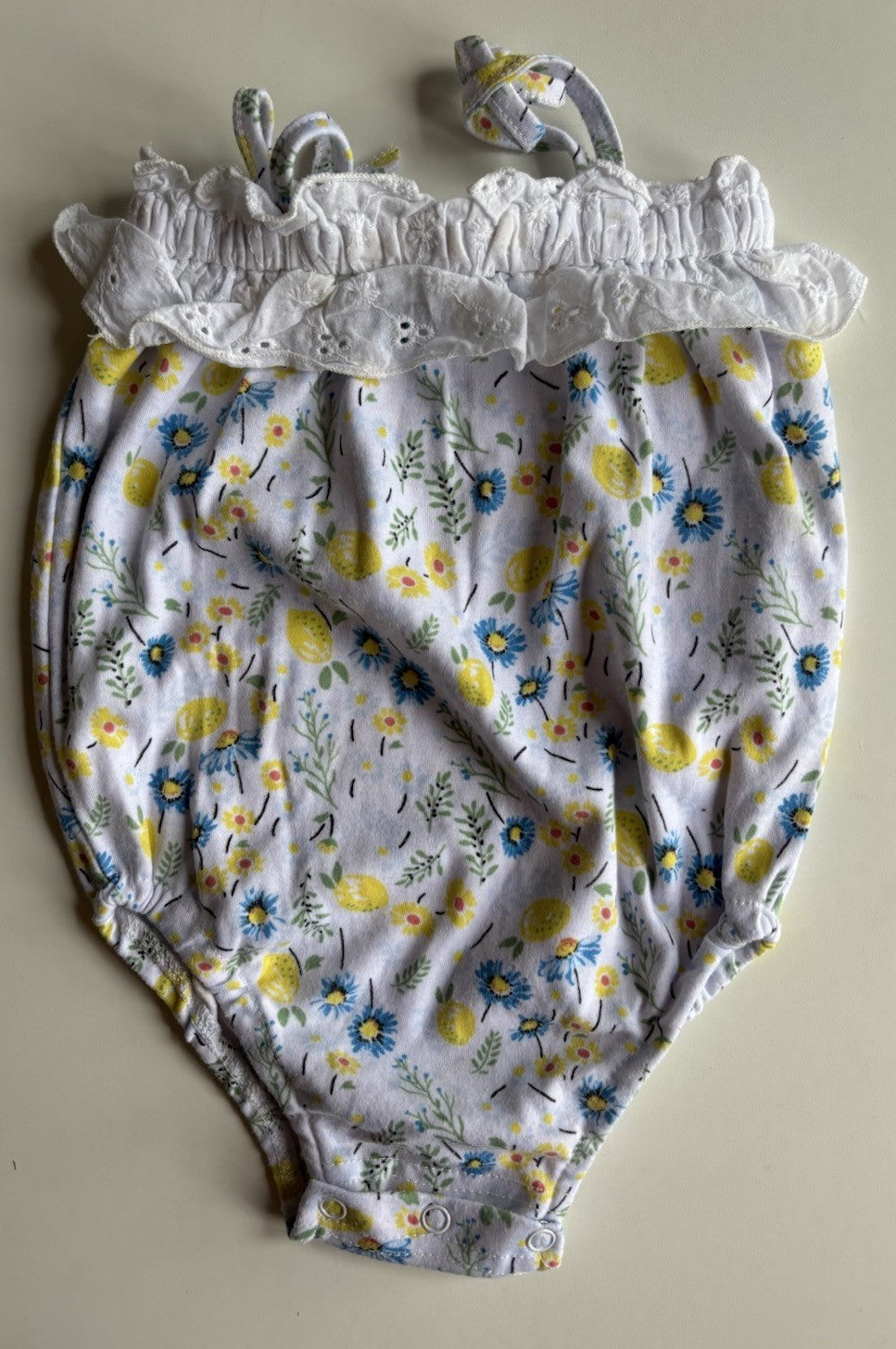 Laura Ashley baby girl size 9-12 months white yellow blue floral romper, VGUC