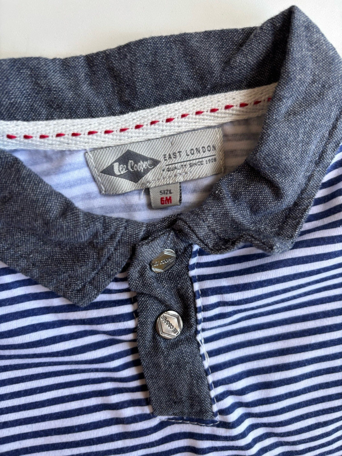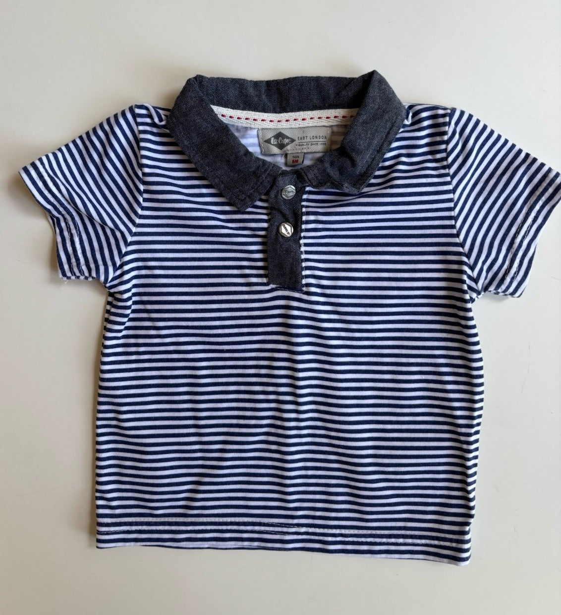 Lee Cooper baby boy size 3-6 months blue stripe polo shirt top, VGUC