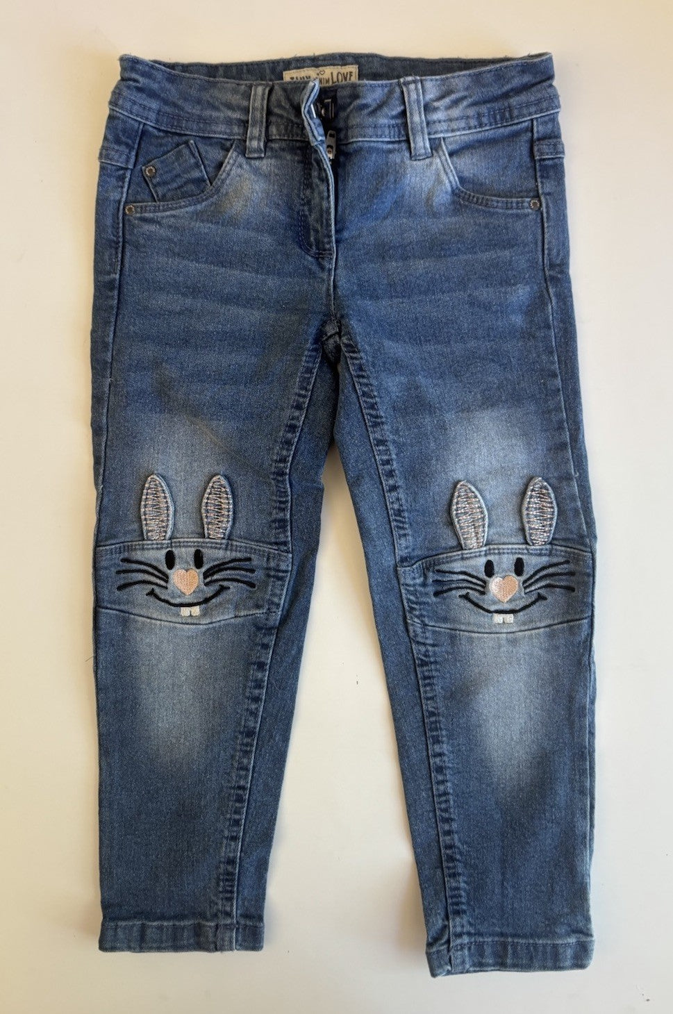 Lily & Dan kids girls toddler size 3 blue denim bunny jeans pants, VGUC