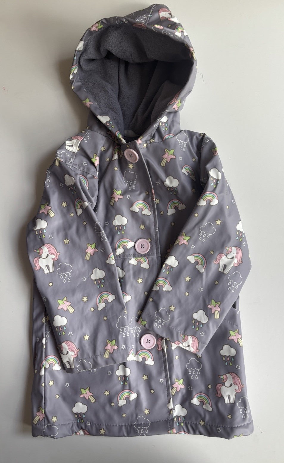 Lily & Dan kids girls toddler size 3 grey unicorns rainbows rain coat