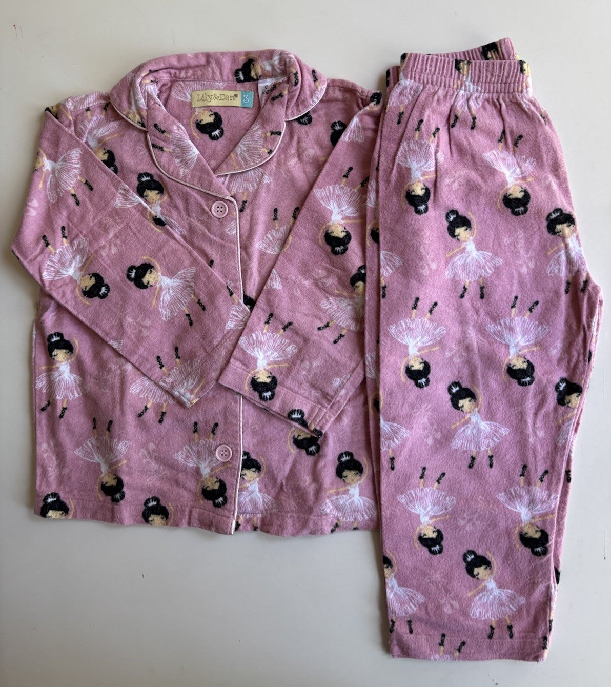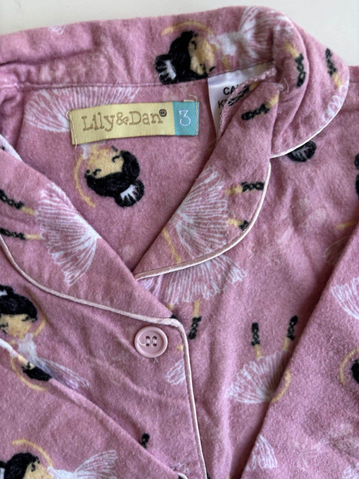 Lily & Dan kids girls toddler size 3 pink ballerina flannel PJ set, VG