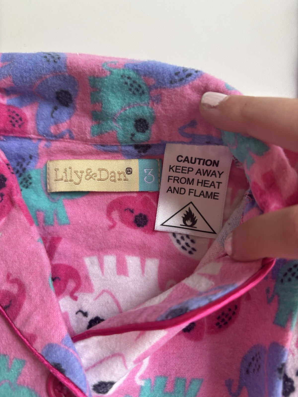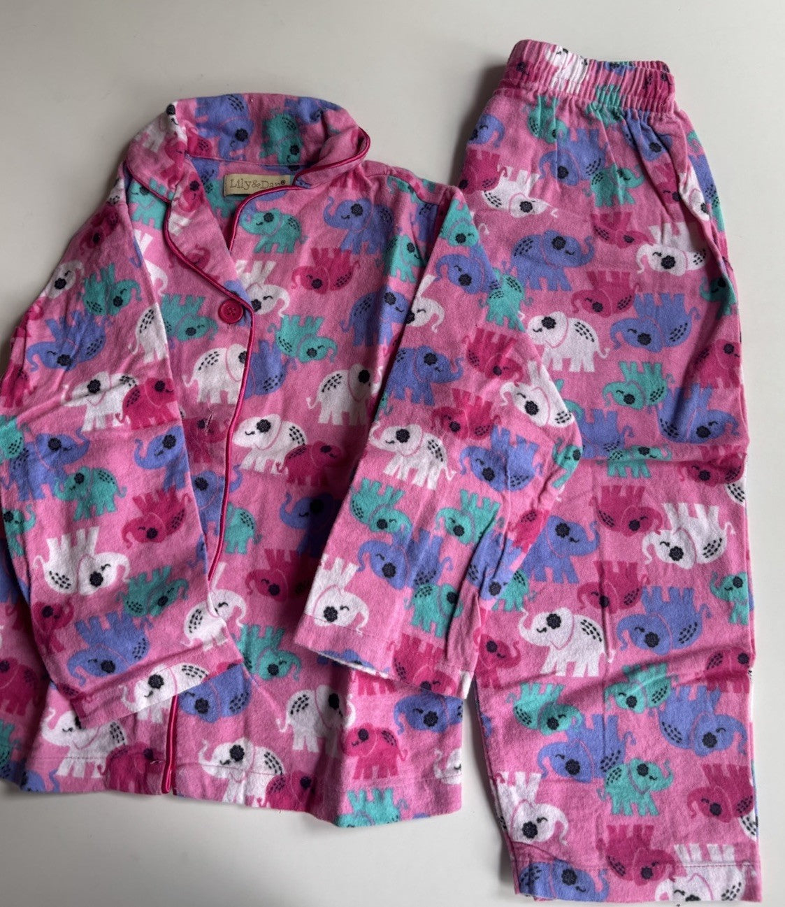 Lily & Dan kids girls toddler size 3 pink elephants flannel PJ set, VGUC