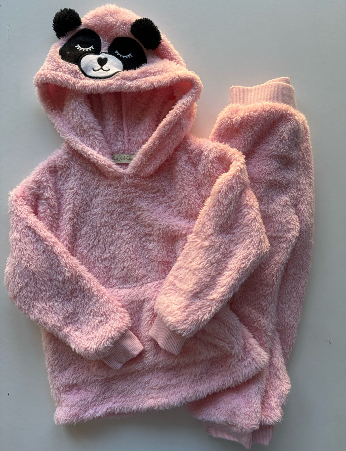 Lily & Dan kids girls toddler size 3 pink fluffy top pants PJ set, VGUC