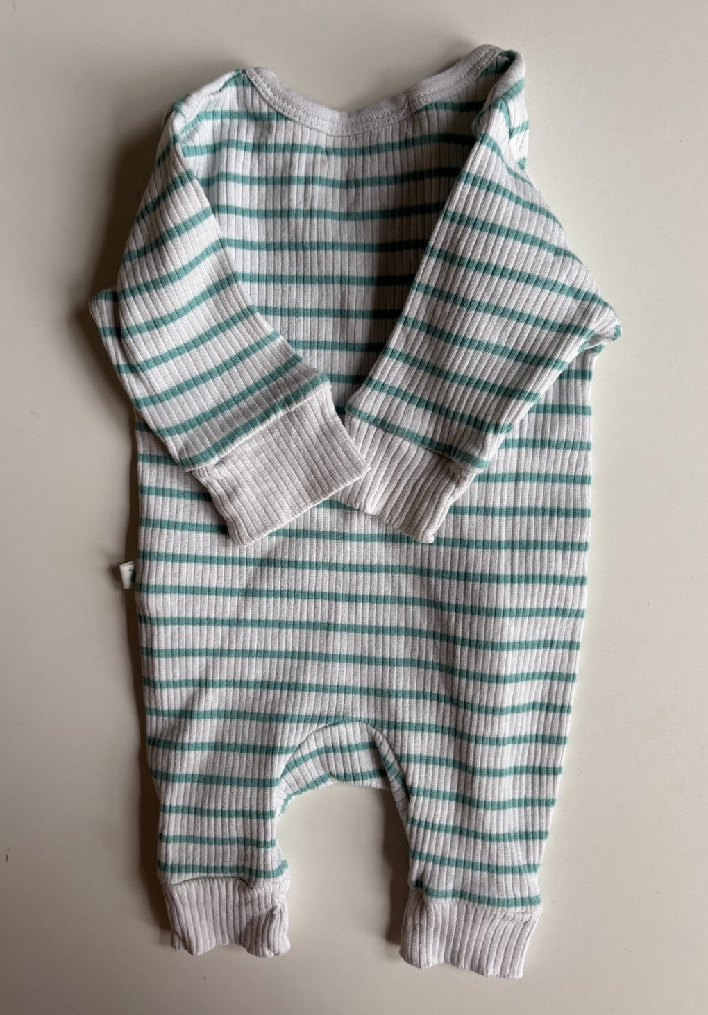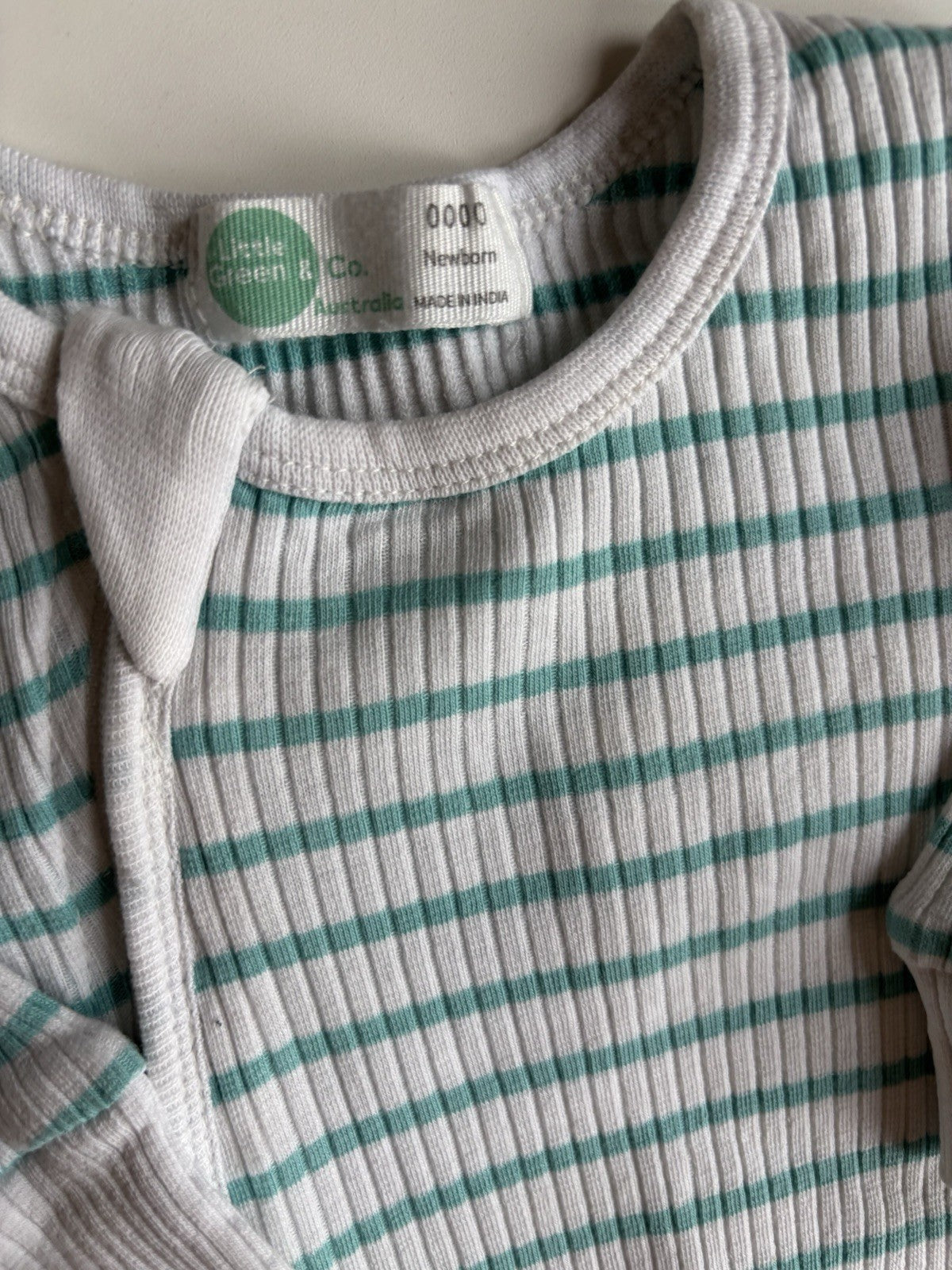 Little Green & Co. baby size newborn green stripe ribbed one-piece, VGUC