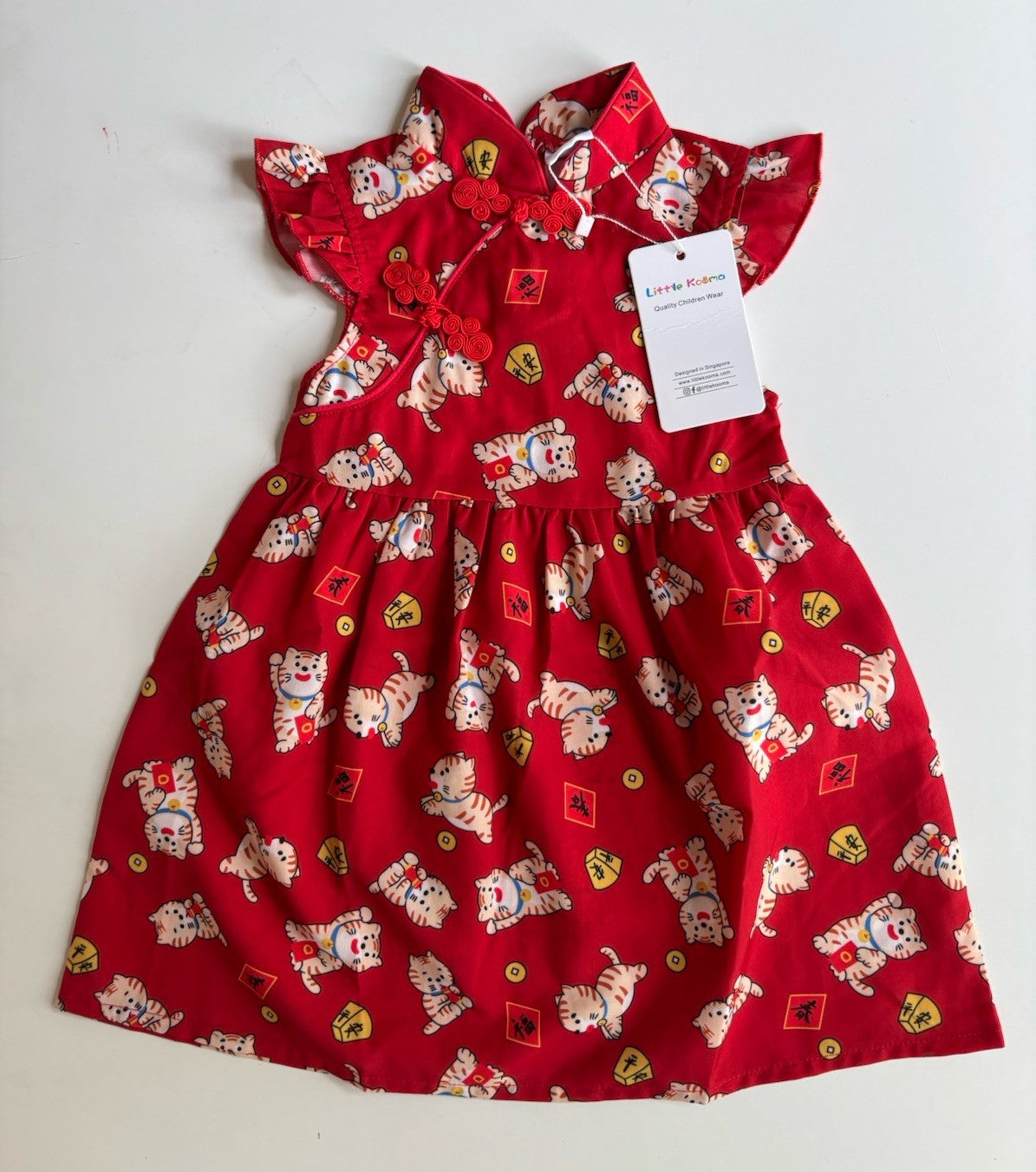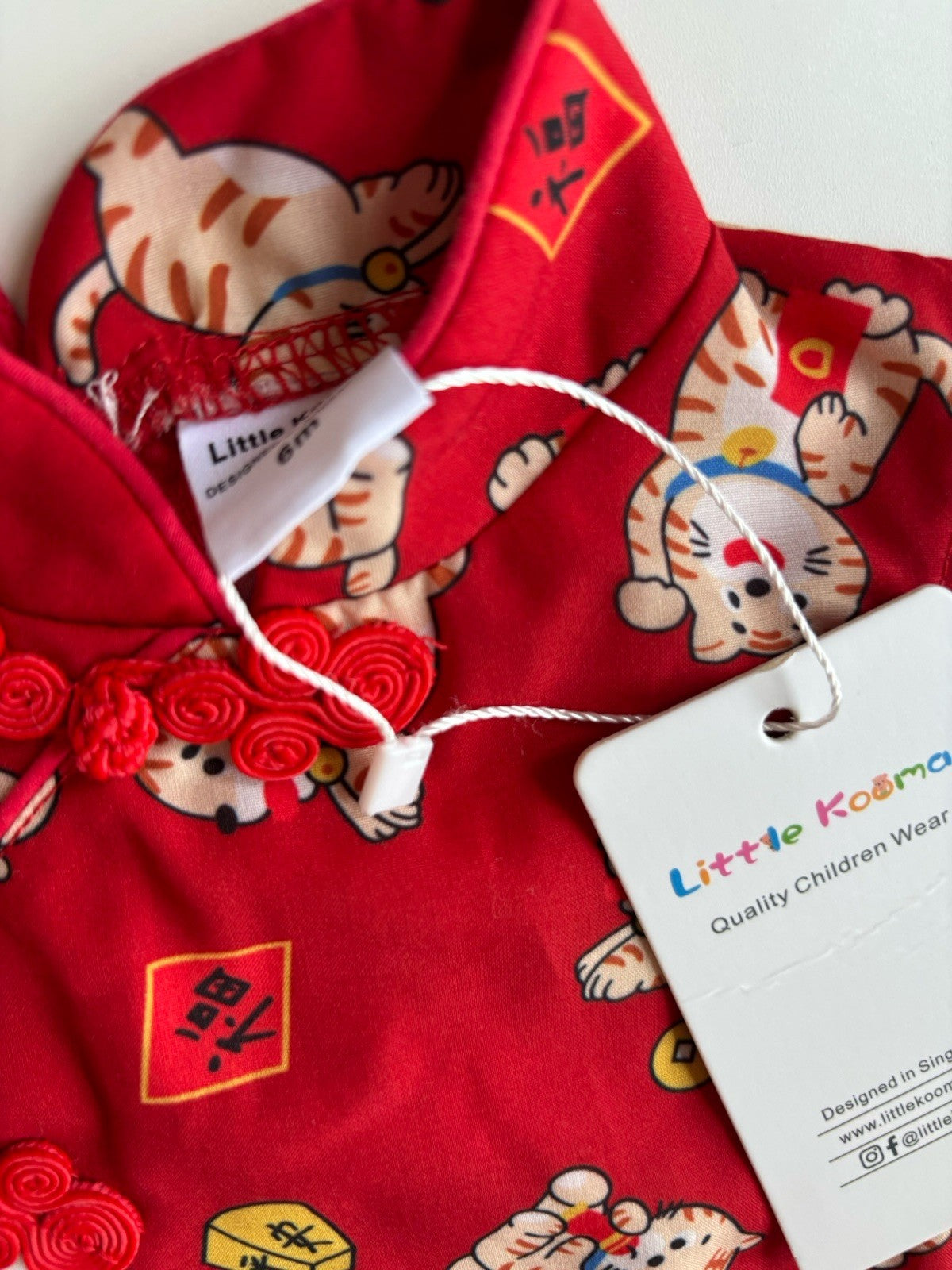 Little Kooma baby girl size 3-6 months red cats short sleeve dress, BN