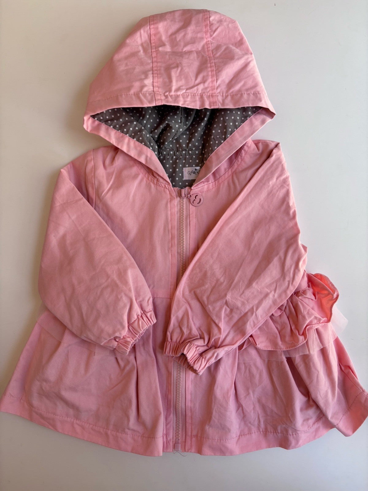 Little Lacey kids girls toddler size 3 pink hooded zip up jacket frills, VGUC