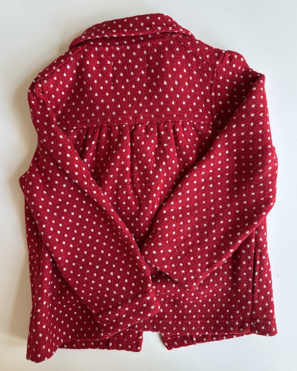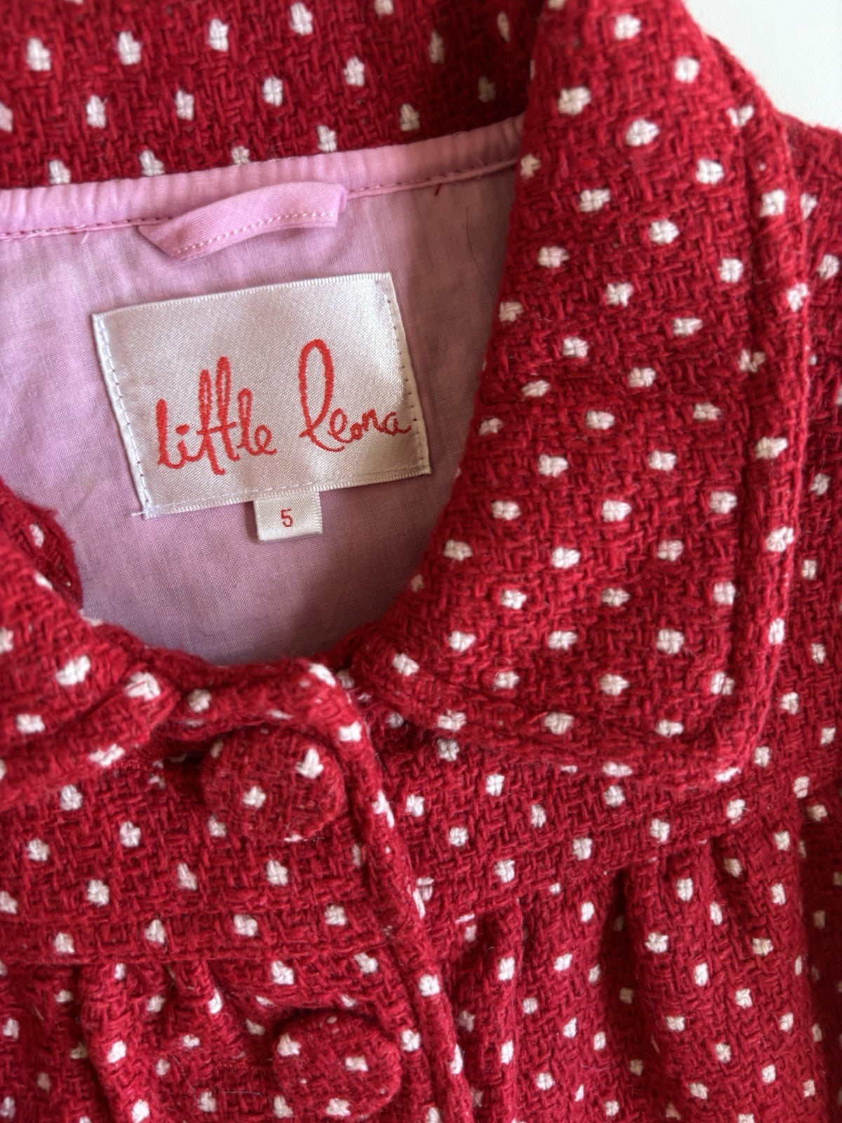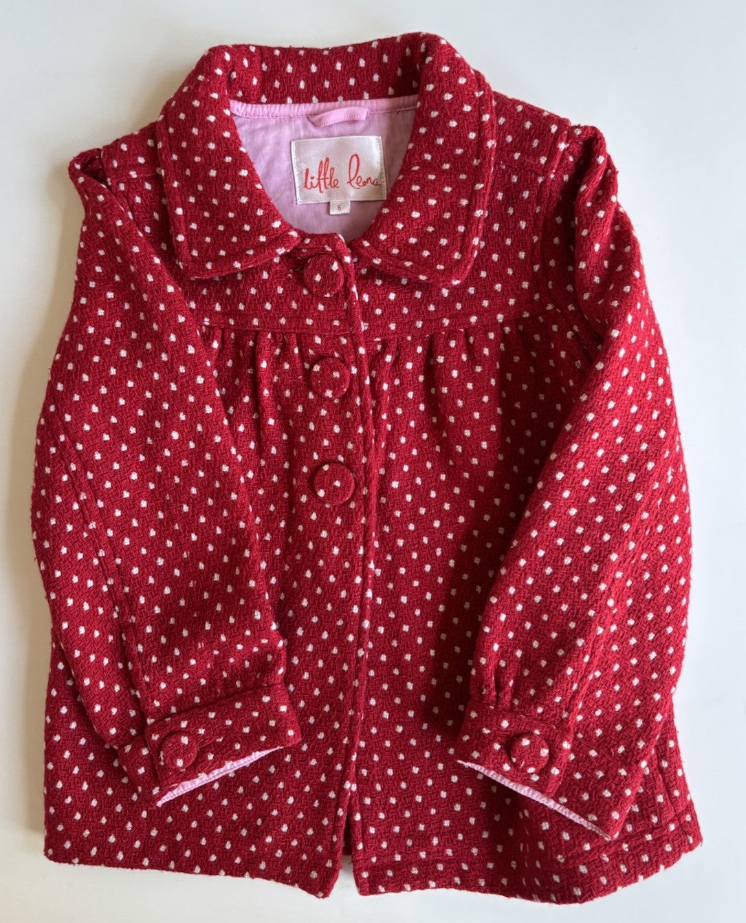 Little Leona kids girls size 5 red white spotted knit jacket coat, VGUC