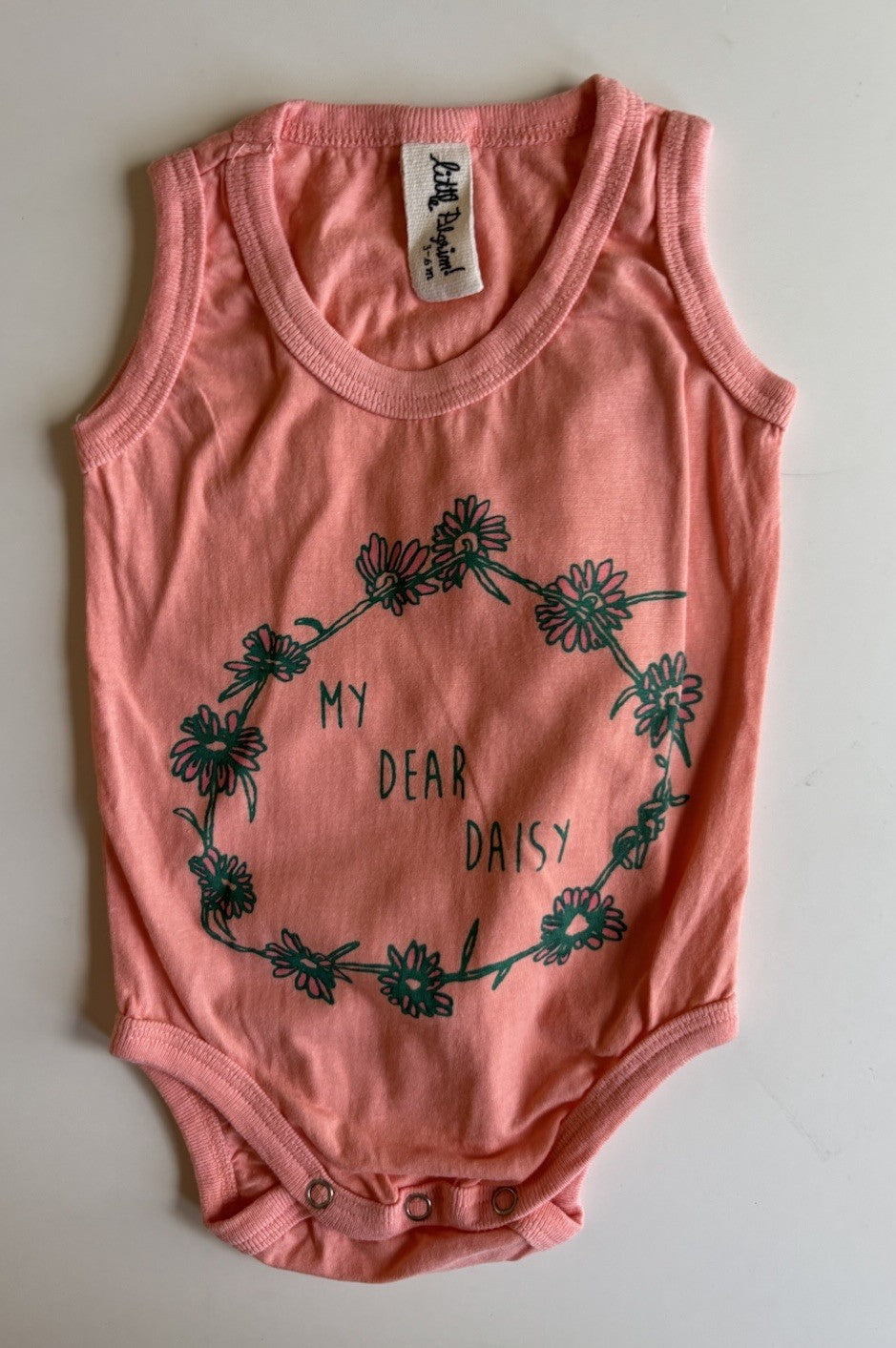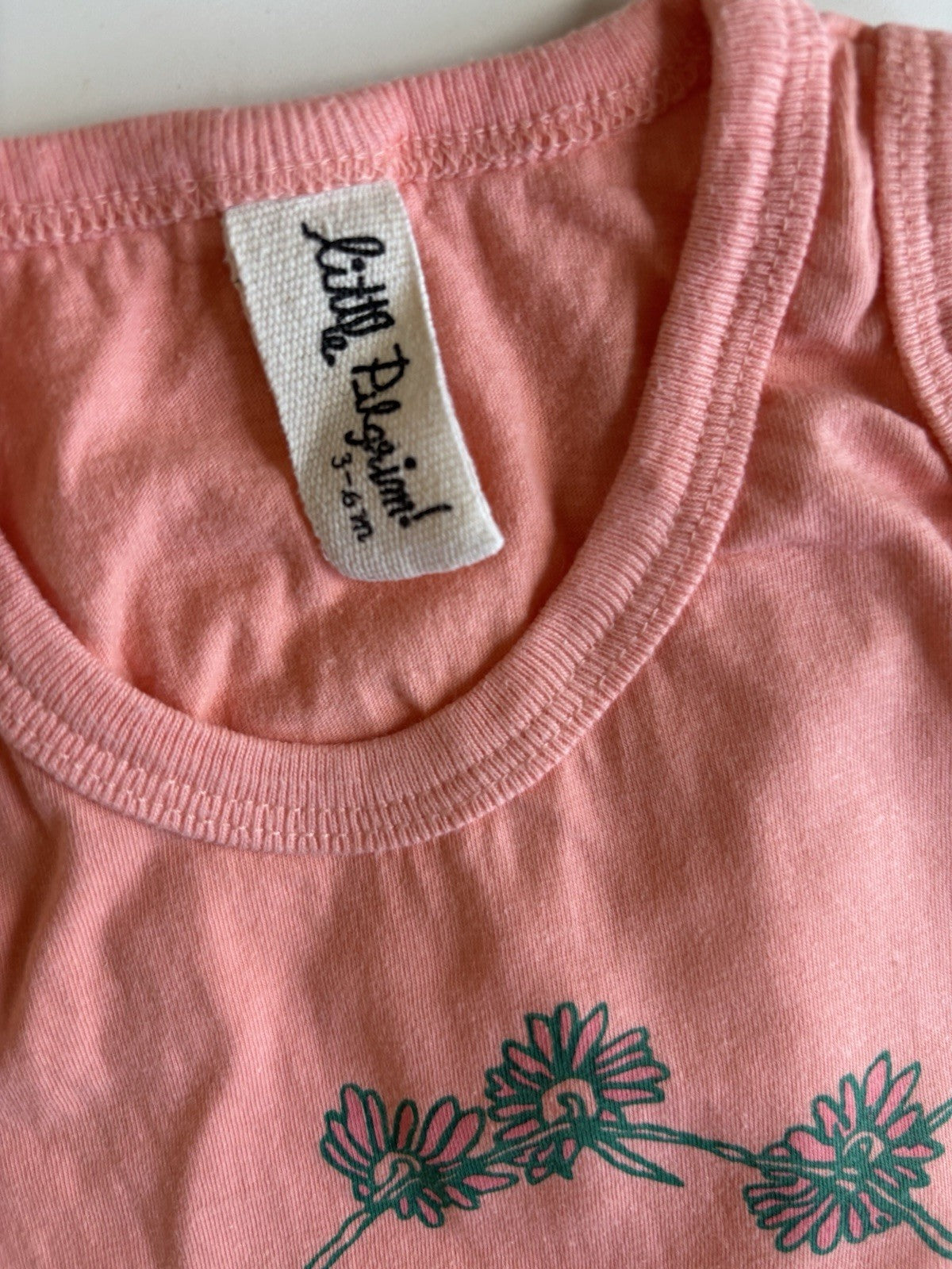 Little Pilgrim baby girl size 3-6 months pink tank bodysuit floral, VGUC
