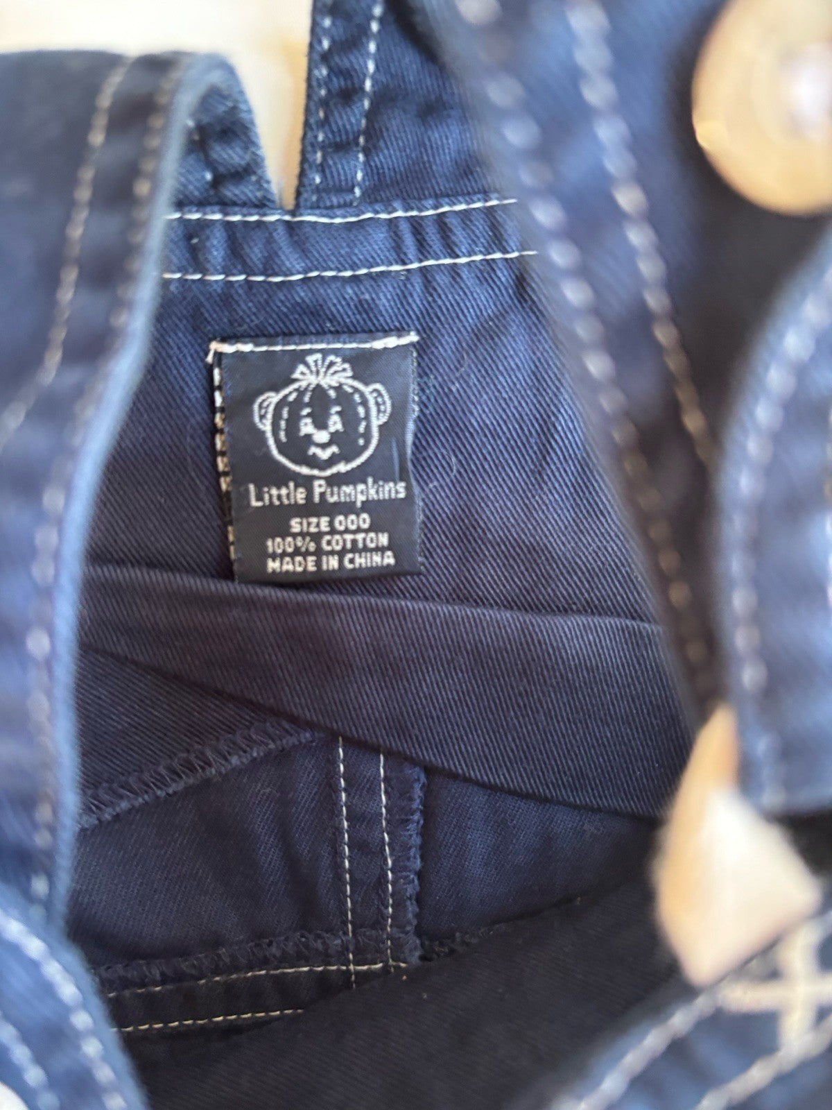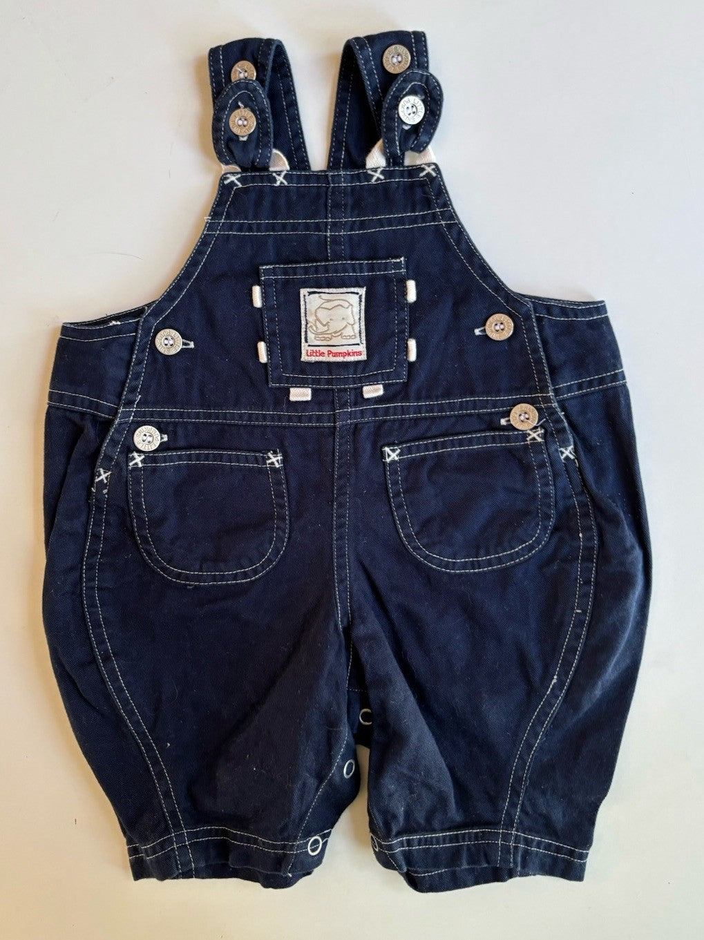 Little Pumpkin baby size 0-3 months blue overalls romper, VGUC