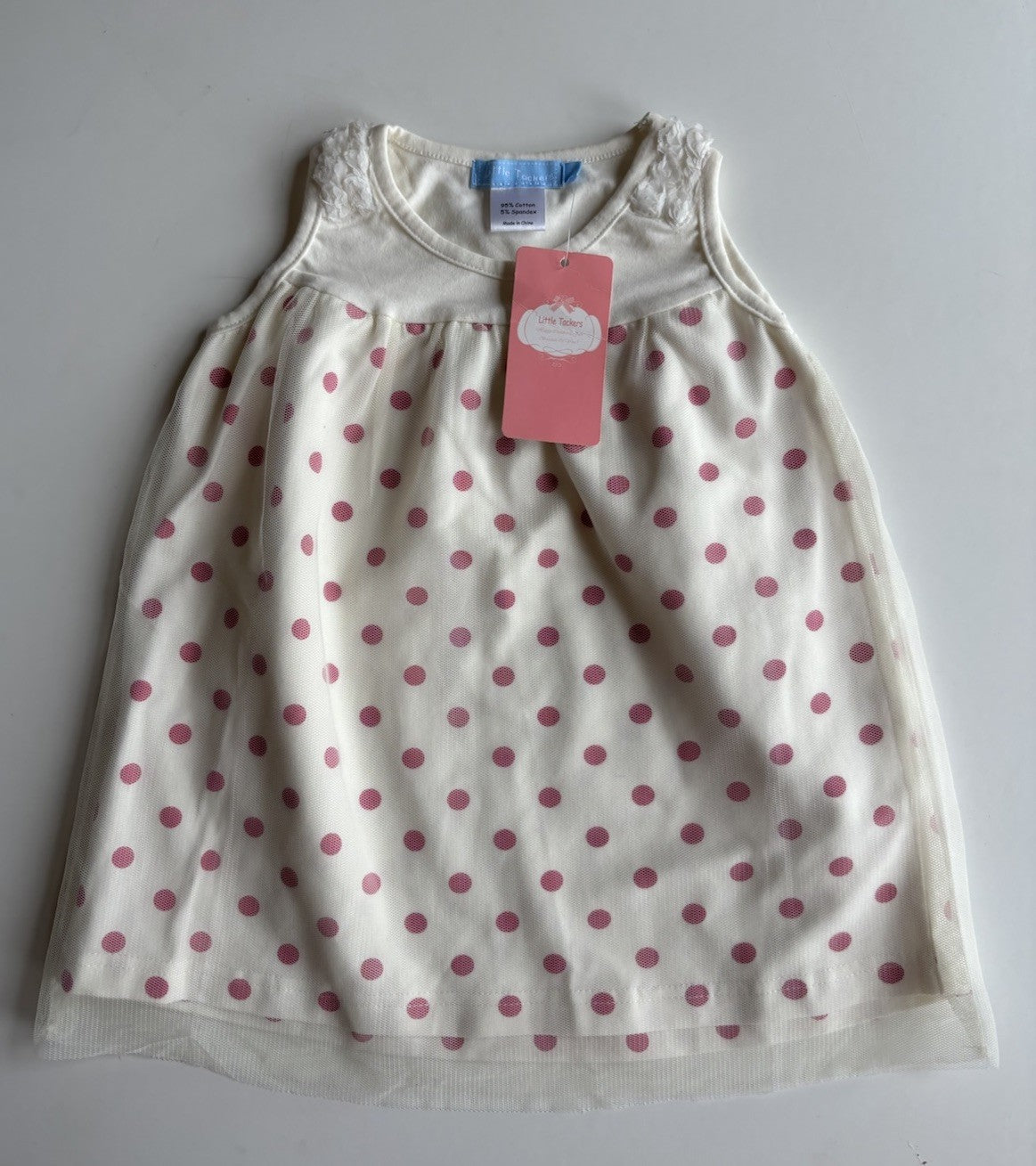 Little Tackers kids girls toddler size 2 white pink spot tulle dress, BNWT