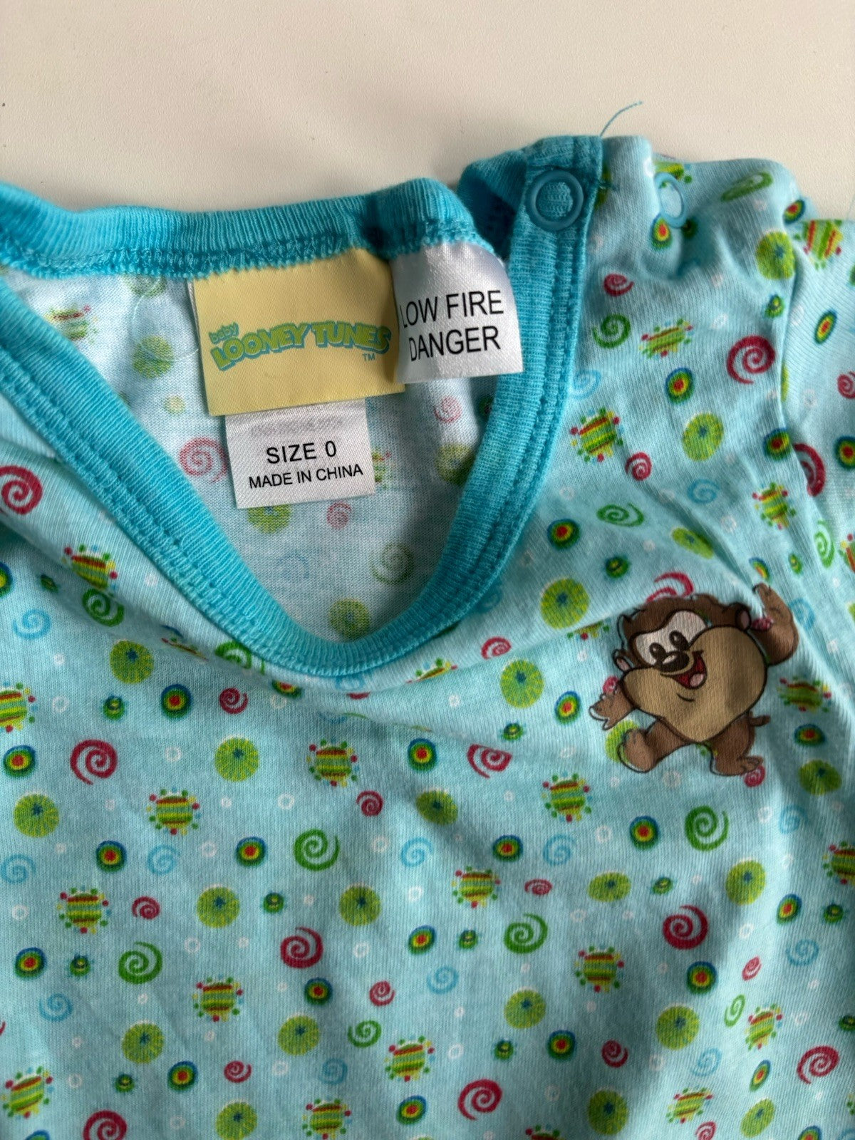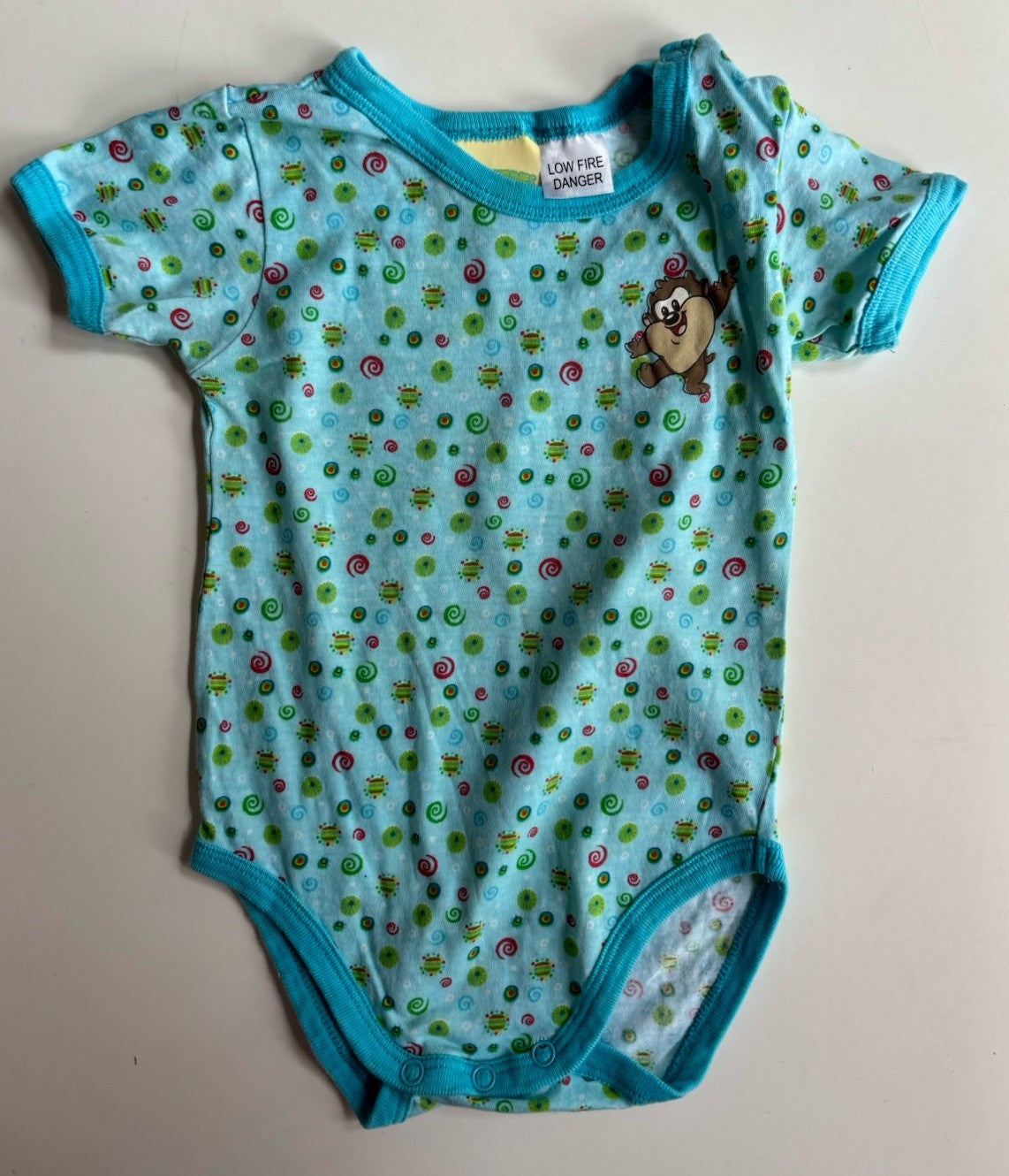 Looney Tunes baby size 6-12 months blue Taz bodysuit top, VGUC