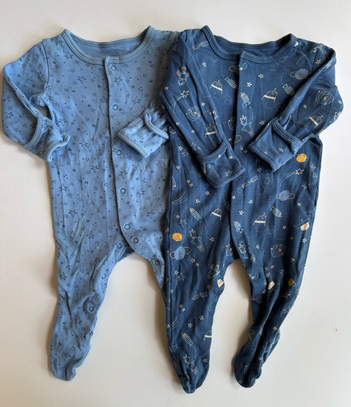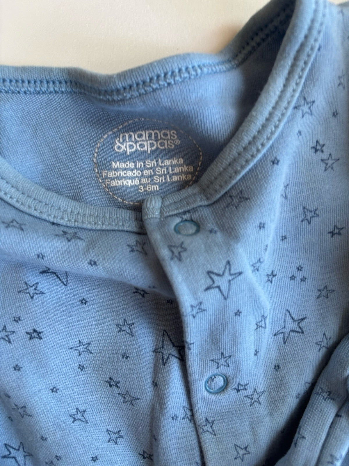 Mamas & Papas baby size 3-6 months x2 blue space stars one-pieces, VGU