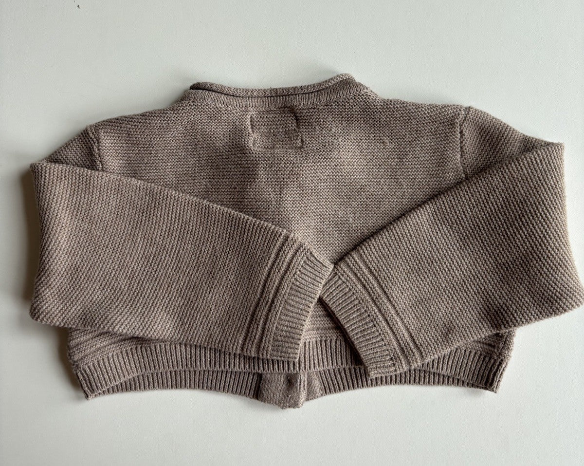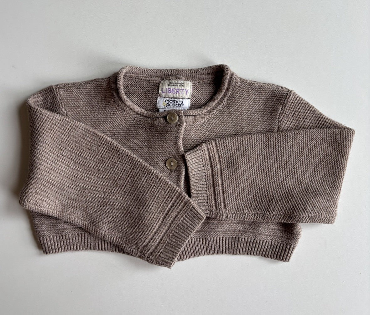 Mamas & Papas x Liberty baby size 6-9 months brown knit cropped cardigan, VGUC