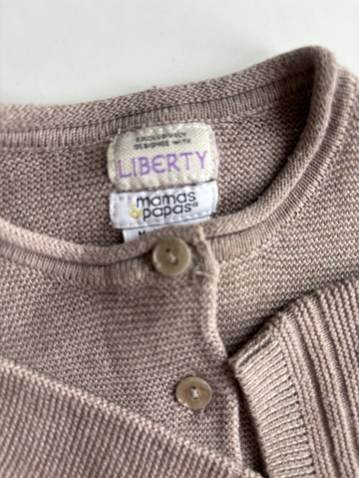 Mamas & Papas x Liberty baby size 6-9 months brown knit cropped cardig