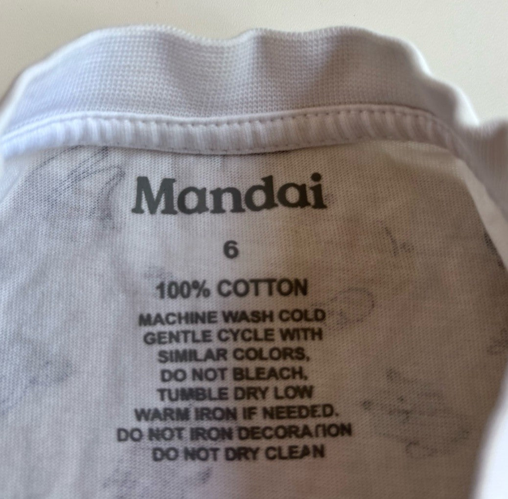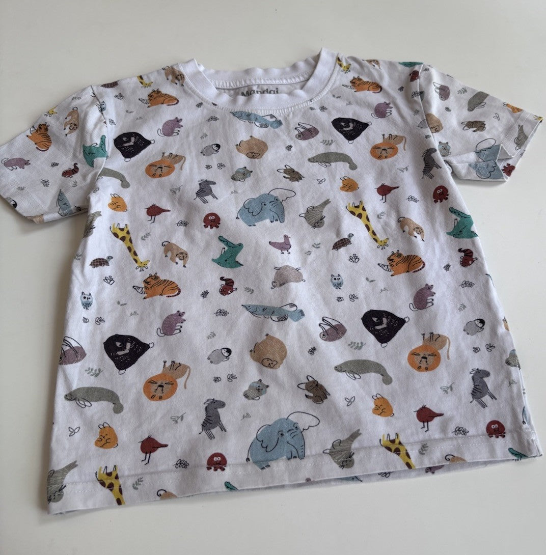 Mandai kids size 6 white short sleeve t-shirt animals, VGUC