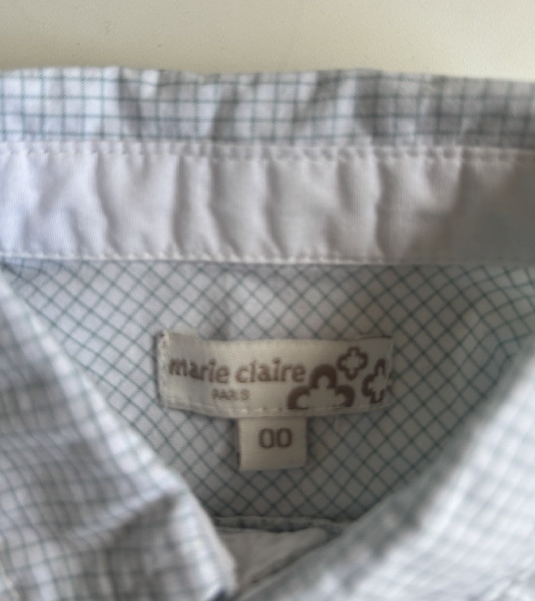 Marie Claire baby size 3-6 months blue green white check shirt, VGUC