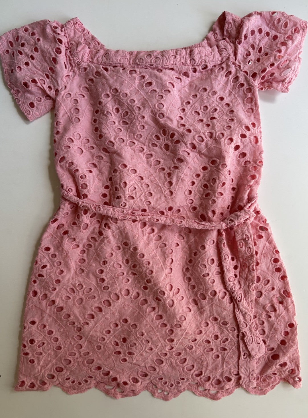Marlo kids girls size 11-12 years pink embroidered lace belted dress, VGUC
