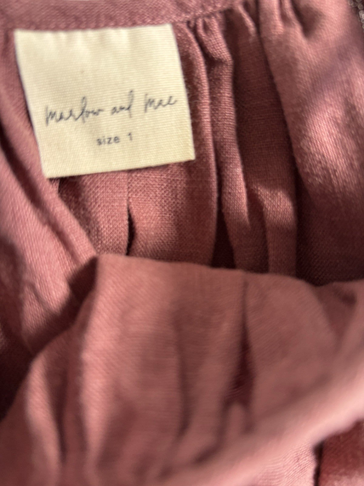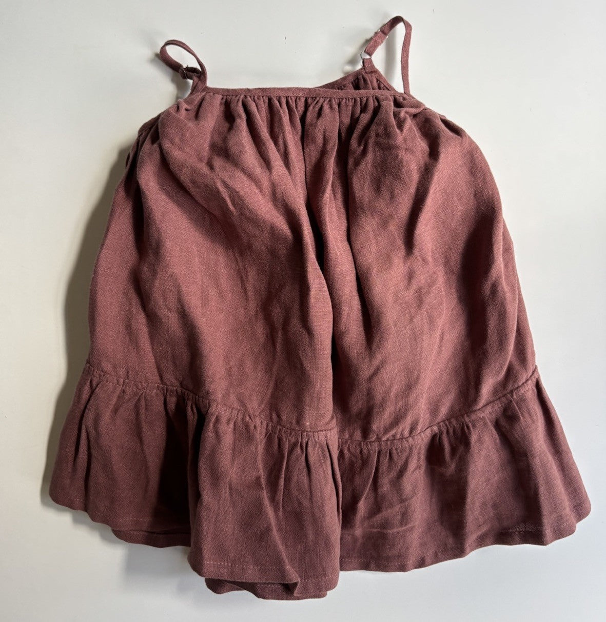 Marlow and Mae baby girl size 12-18 months maroon 100% linen dress, VGUC