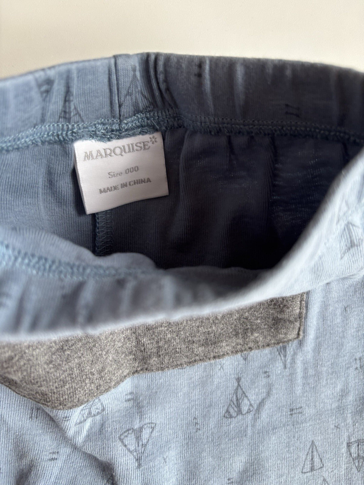 Marquise baby boy size 0-3 months blue grey teepees leggings, VGUC