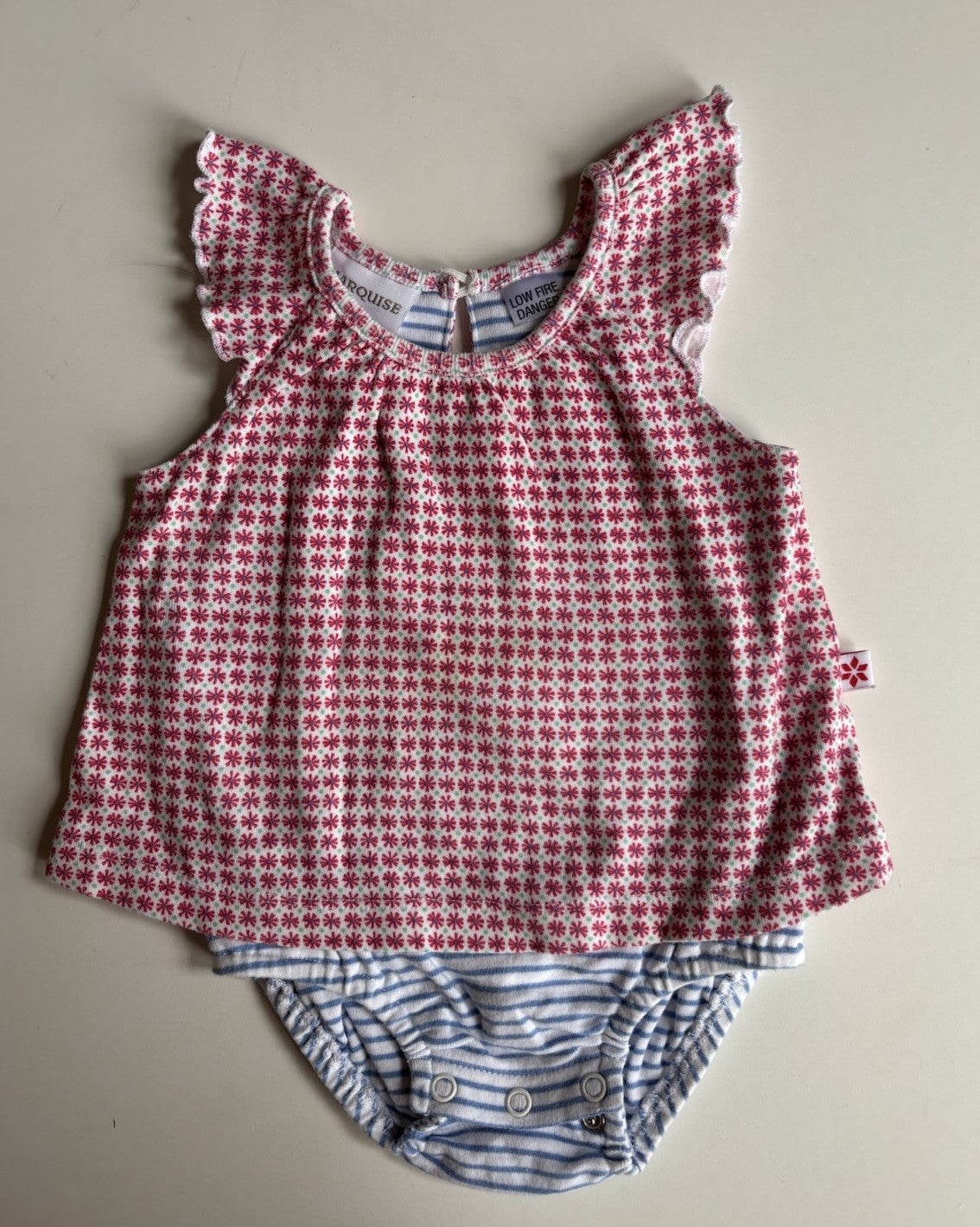 Marquise baby girl size 0-3 months pink floral bodysuit top, VGUC