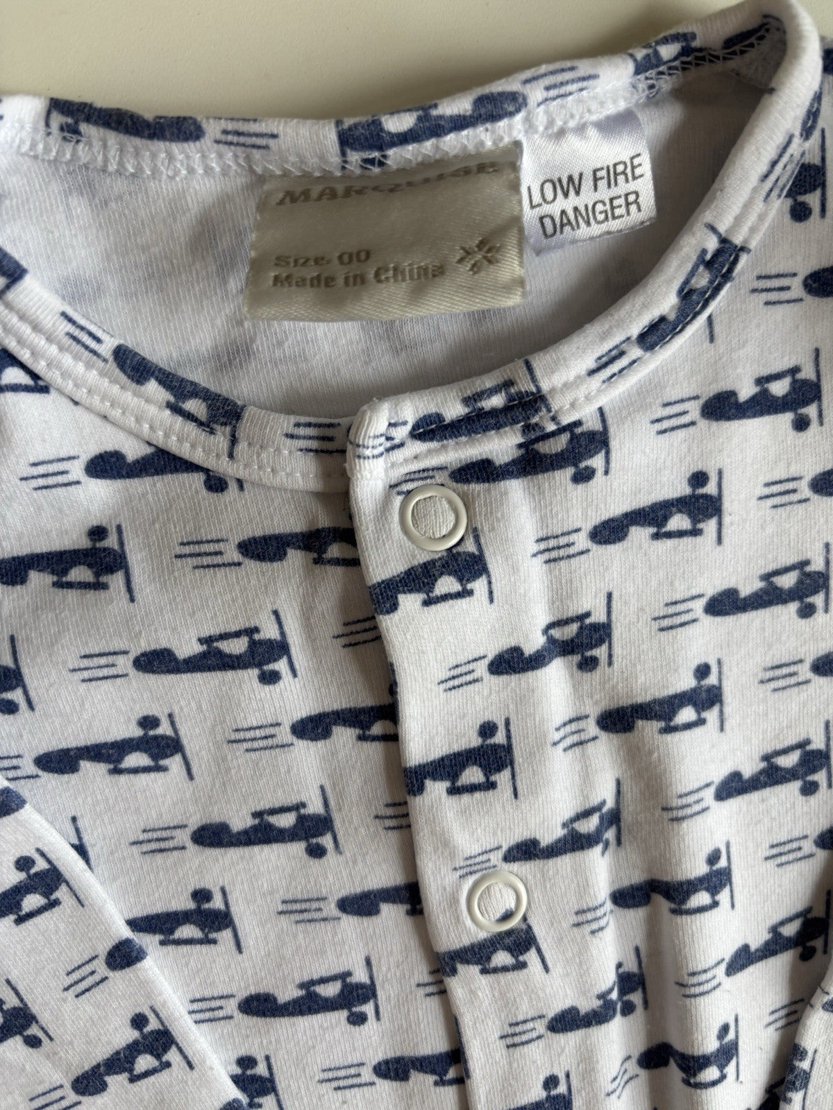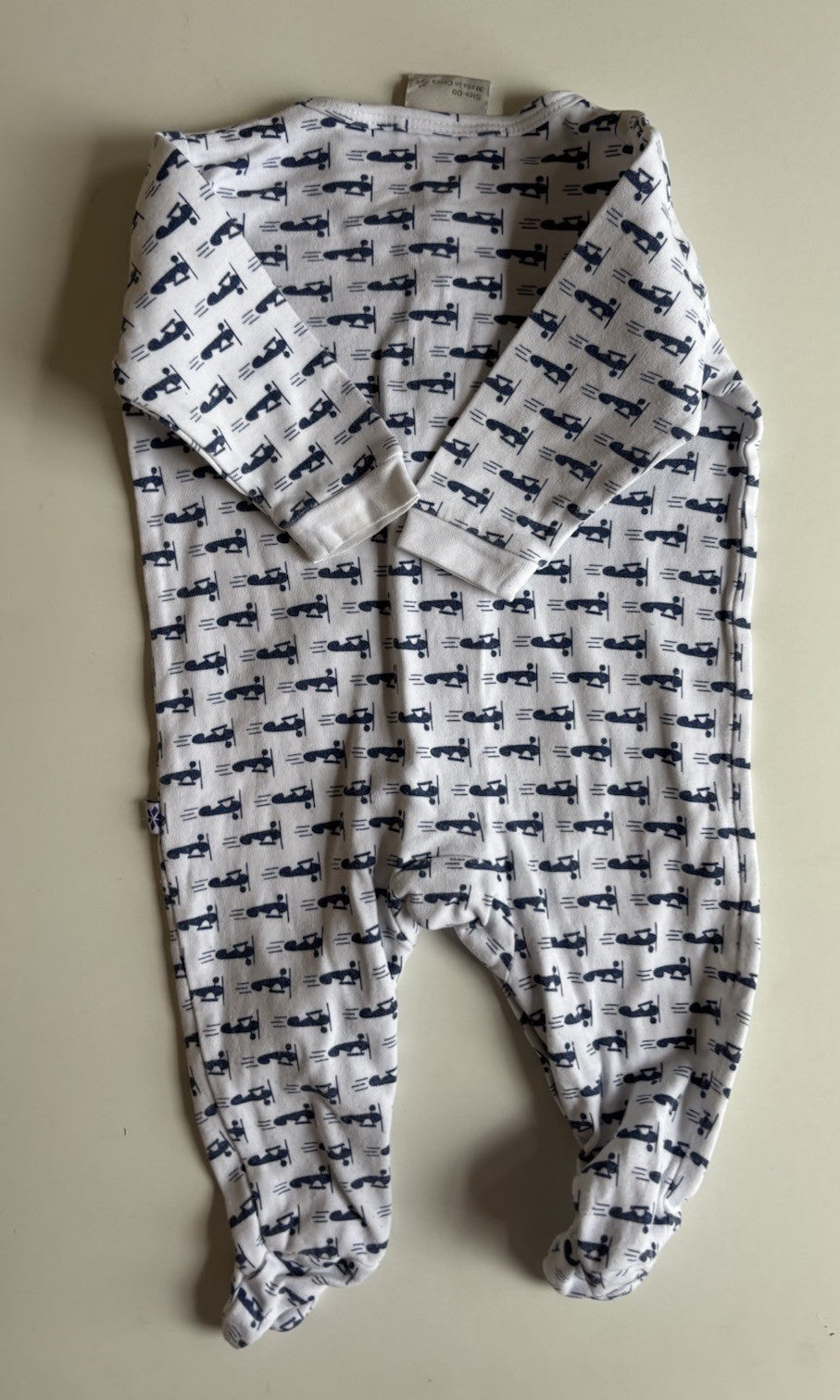Marquise baby size 3-6 months white blue planes one-piece, VGUC