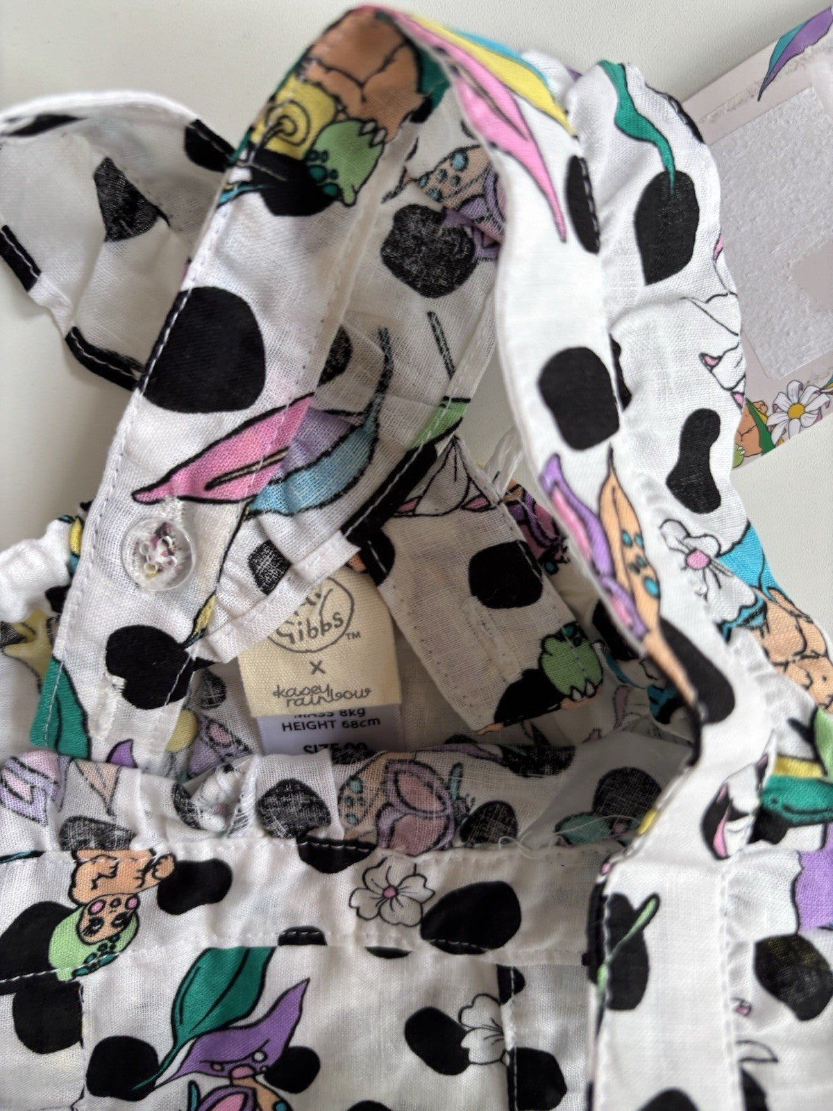 May Gibbs x Kasey Rainbow baby girl size 3-6 months white spot romper, BNWT