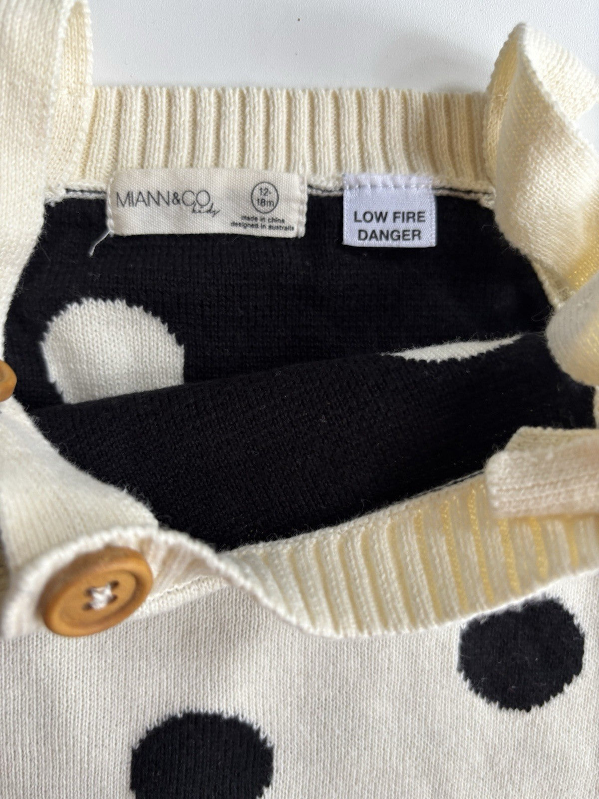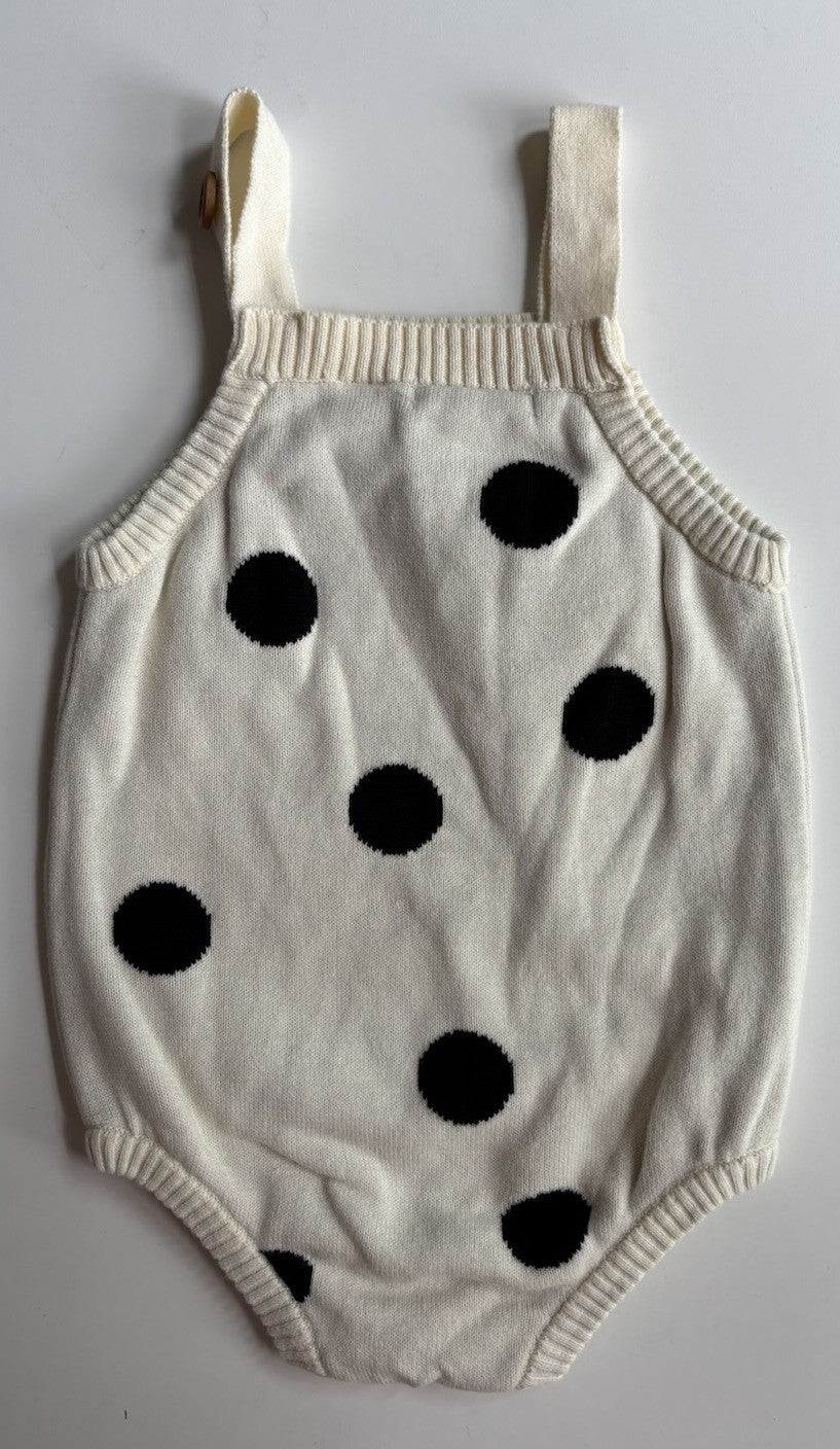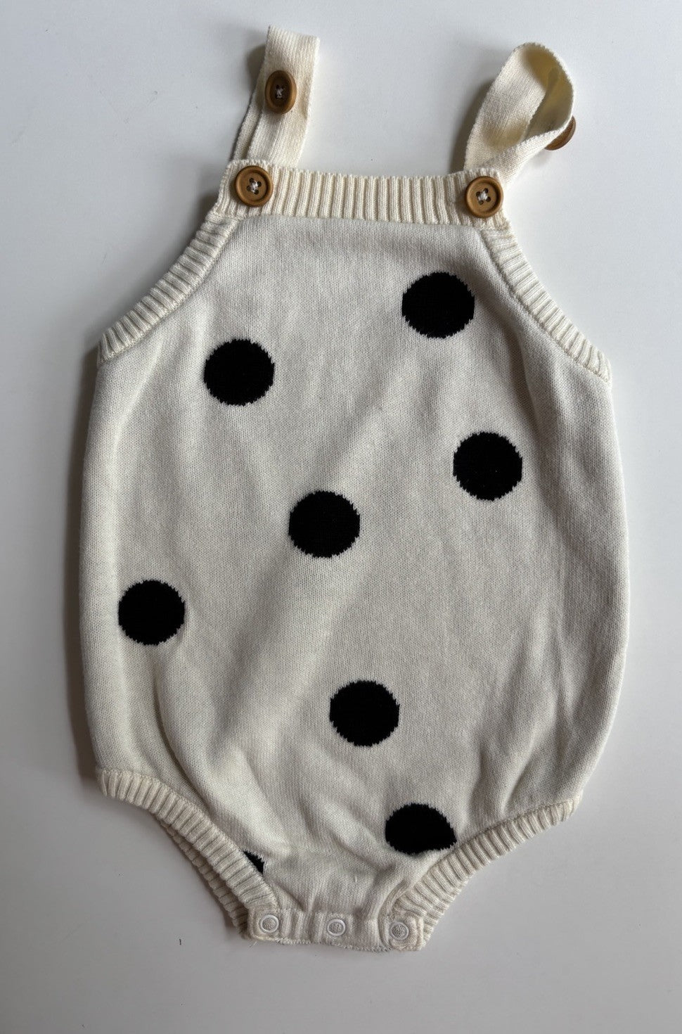 Miann & Co. baby size 12-18 months white black spot knitted romper, VGUC