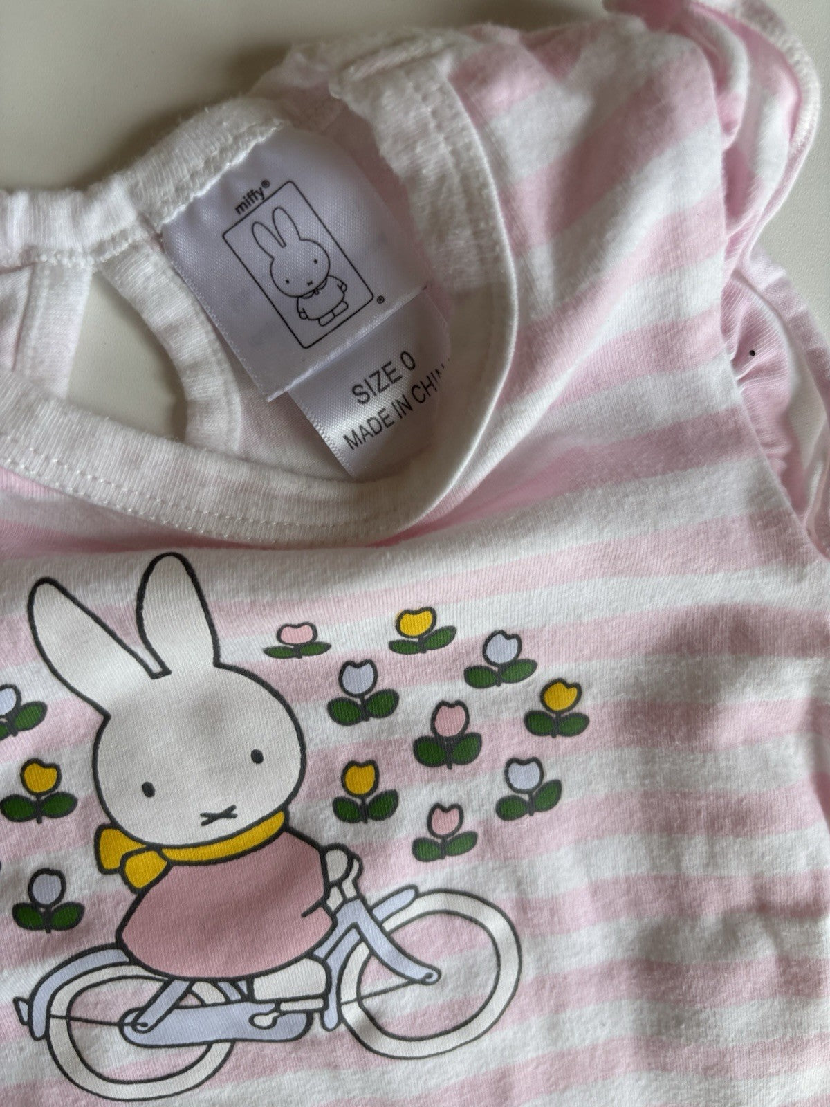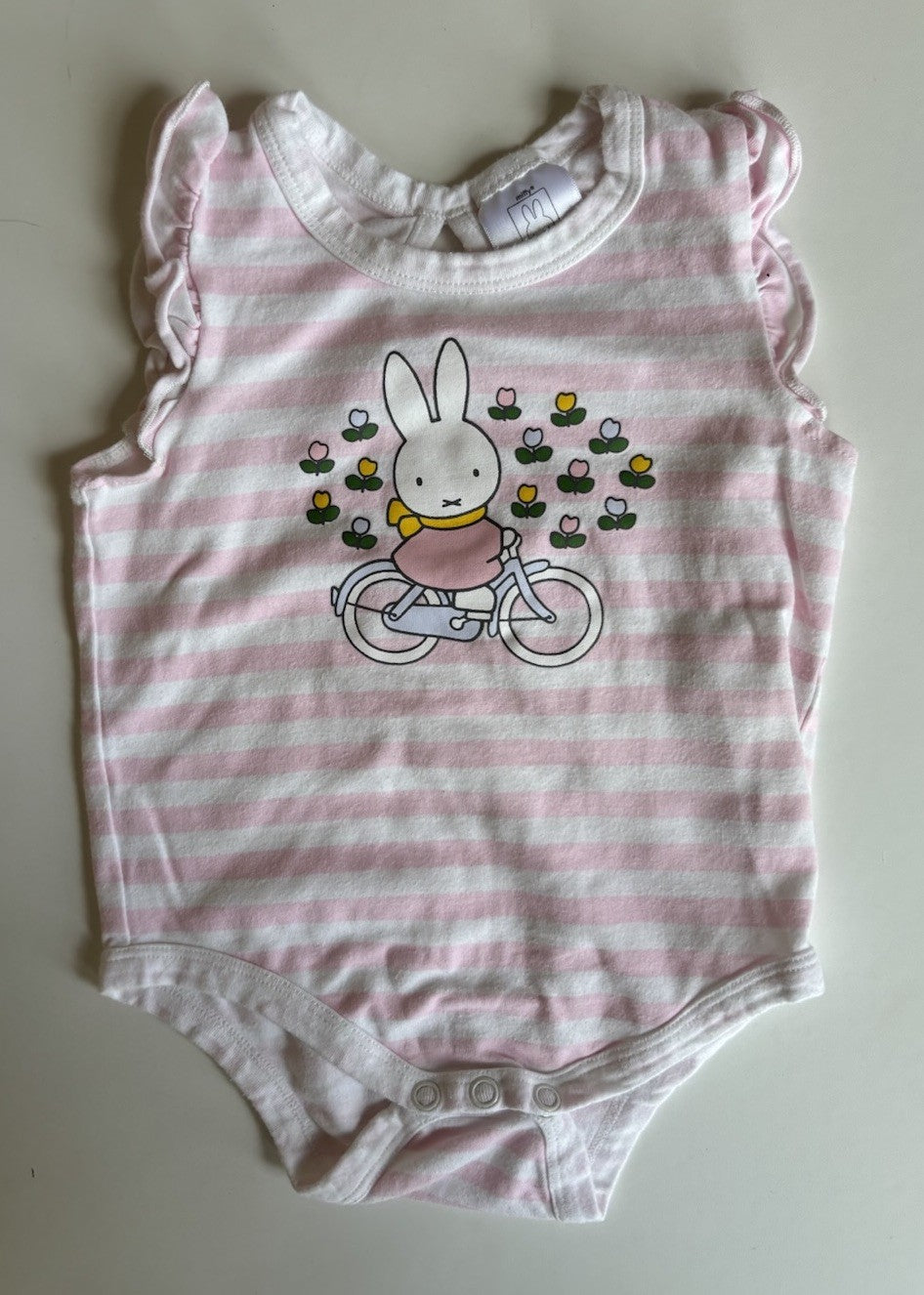 Miffy baby girl size 6-12 months pink stripe t-shirt bodysuit, VGUC