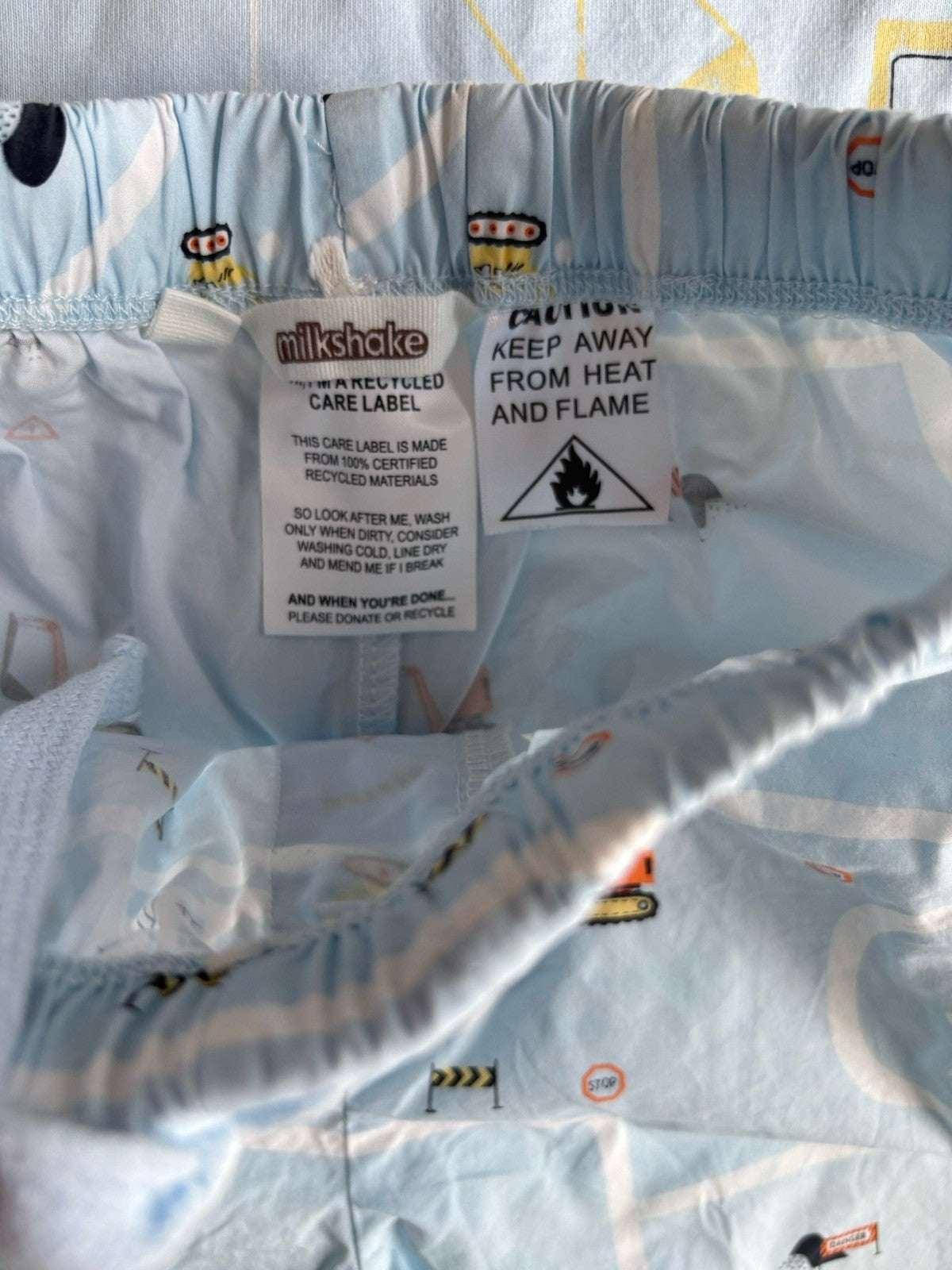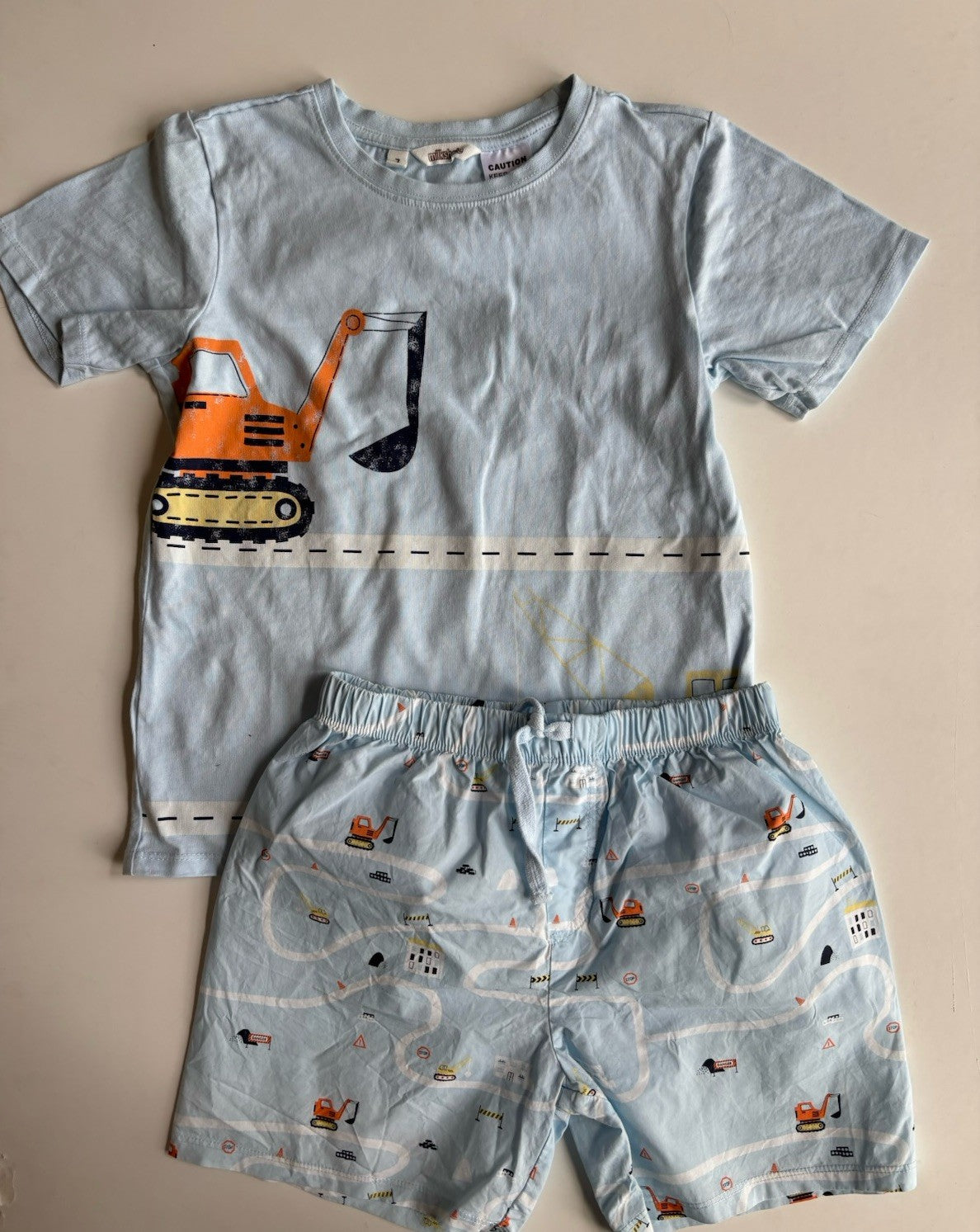 Milkshake kids boys size 7 blue diggers construction PJ set shorts top, VGUC