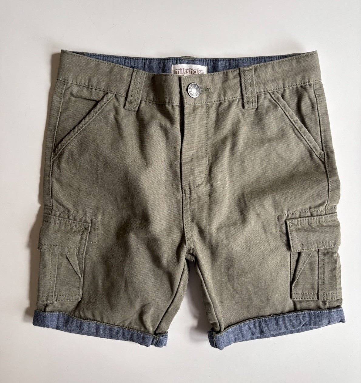 Milkshake kids boys size 8 green cargo shorts, EUC