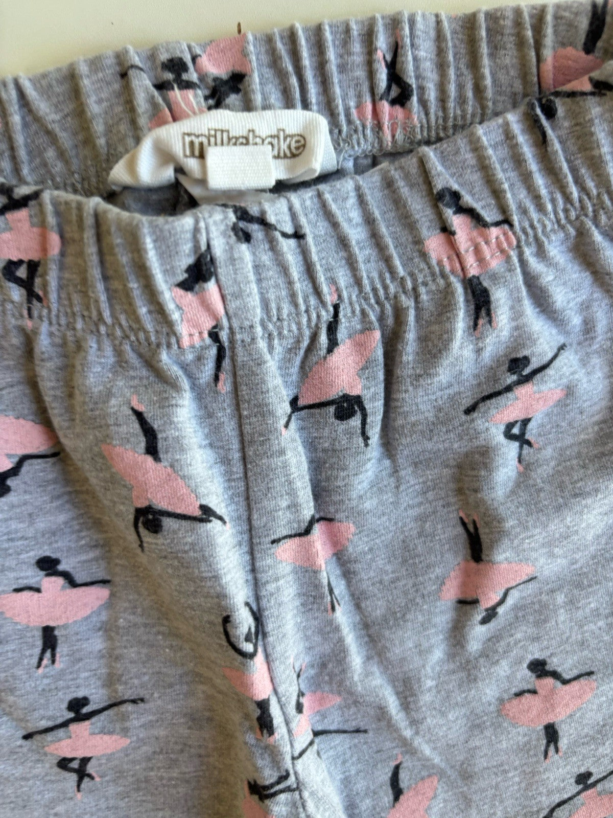 Milkshake kids girls toddler size 3 grey pink ballerina leggings, VGUC