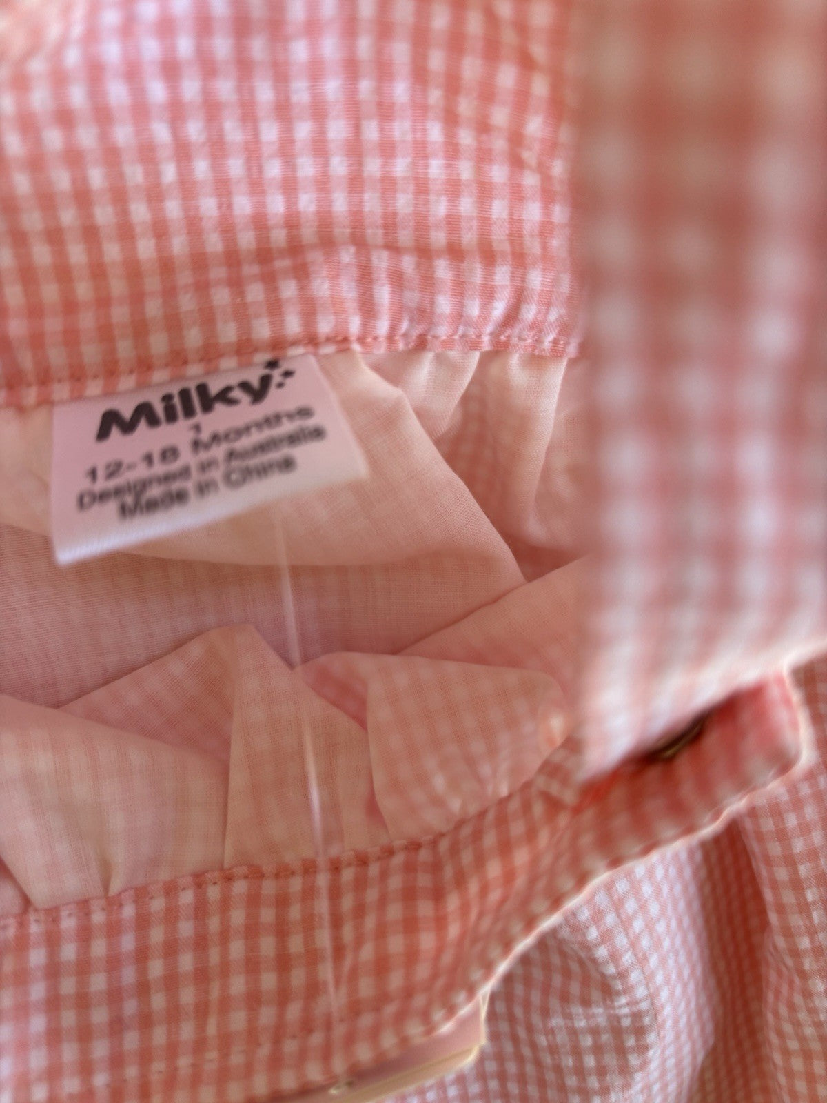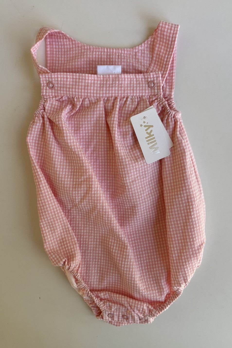 Milky baby girl size 12-18 months pink gingham romper one-piece, BNWT