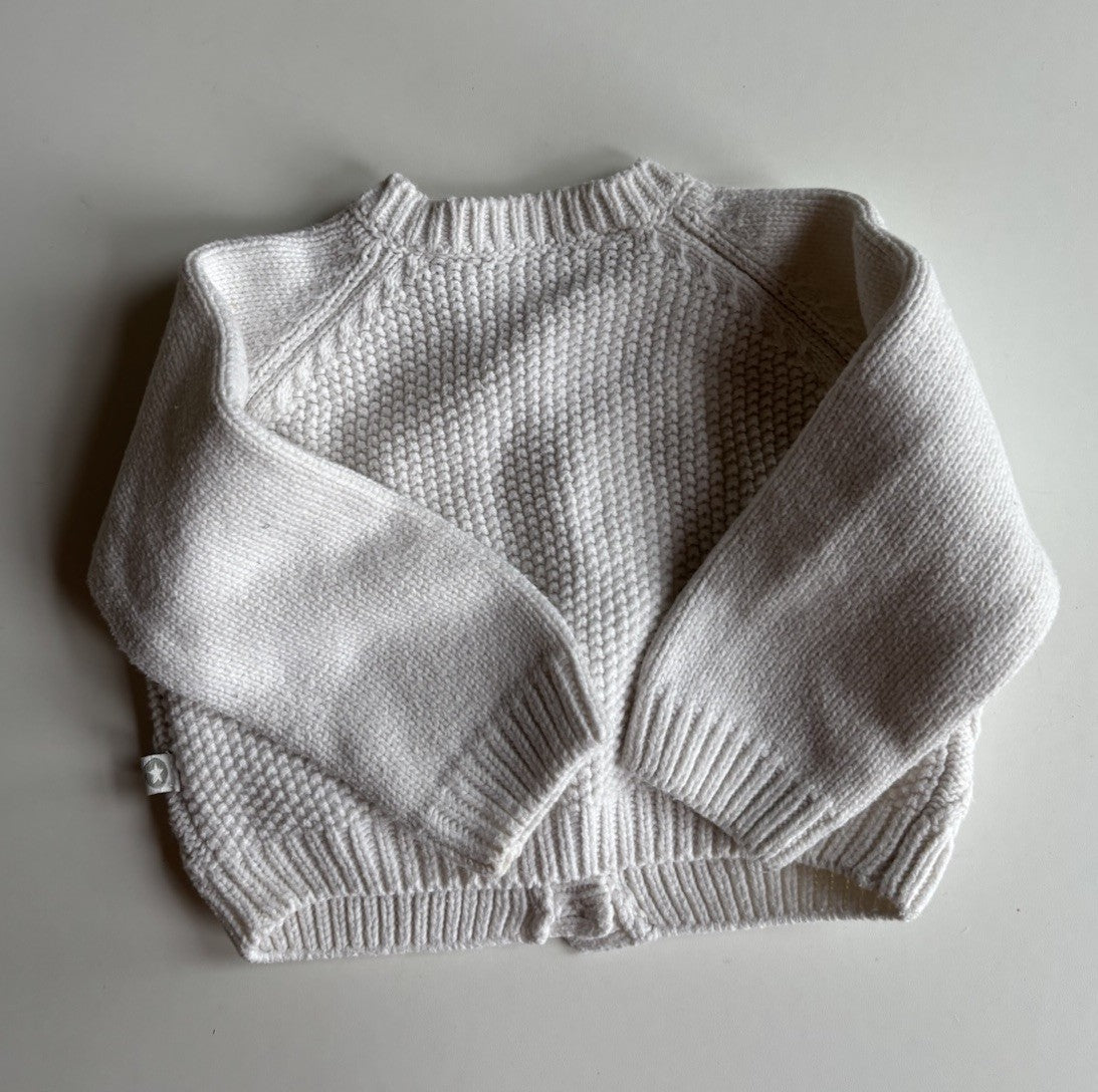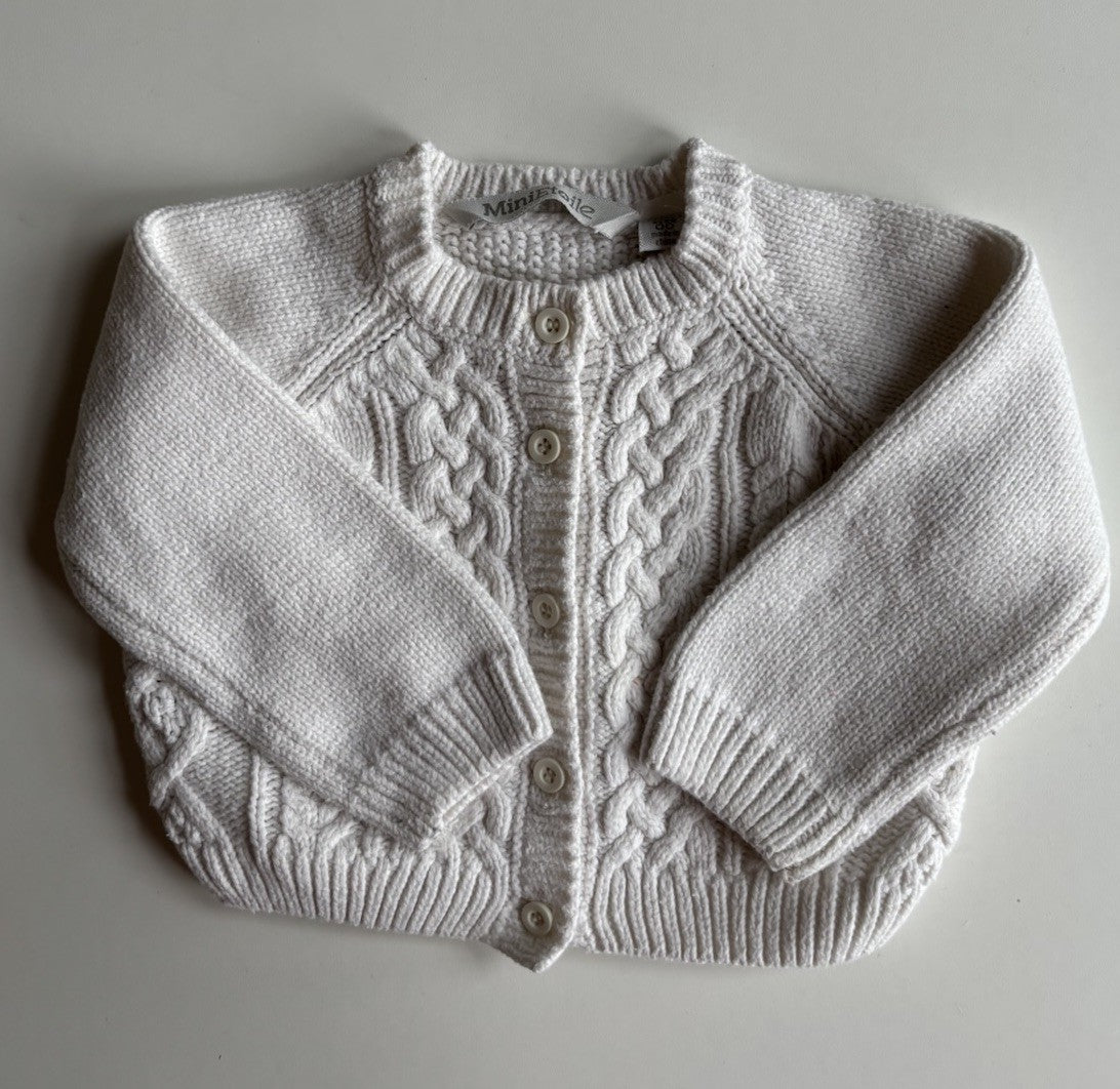 Mini Etoile baby size 3-6 months white cable knit cardigan jumper, VGU