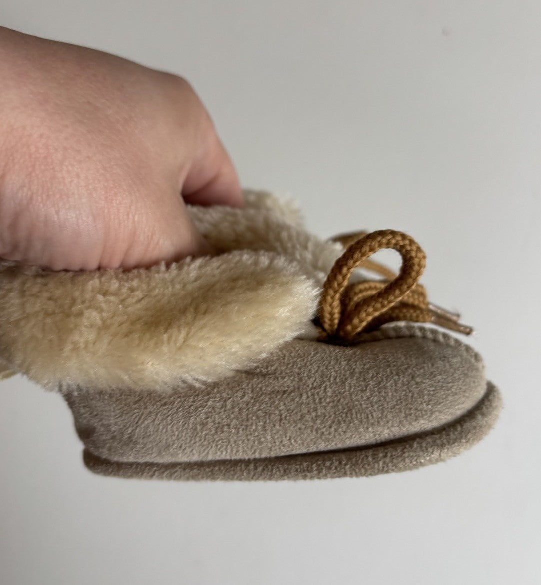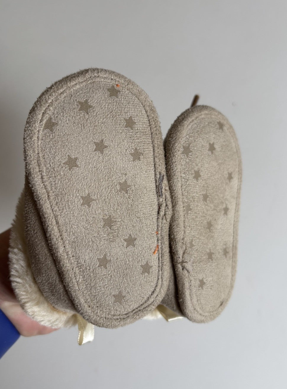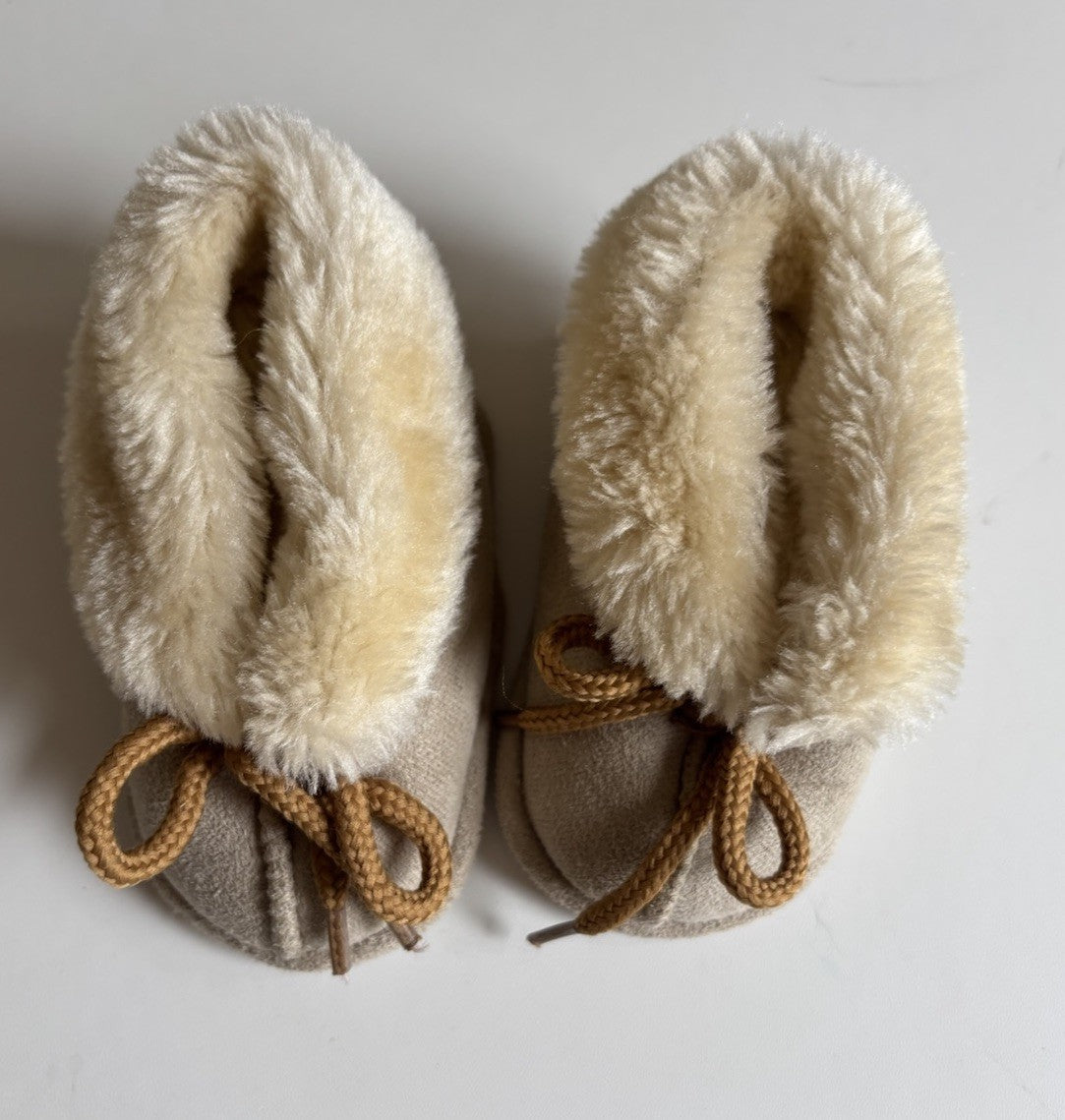 Mini Mango baby size 0-3 months beige suede fluffy slippers, VGUC