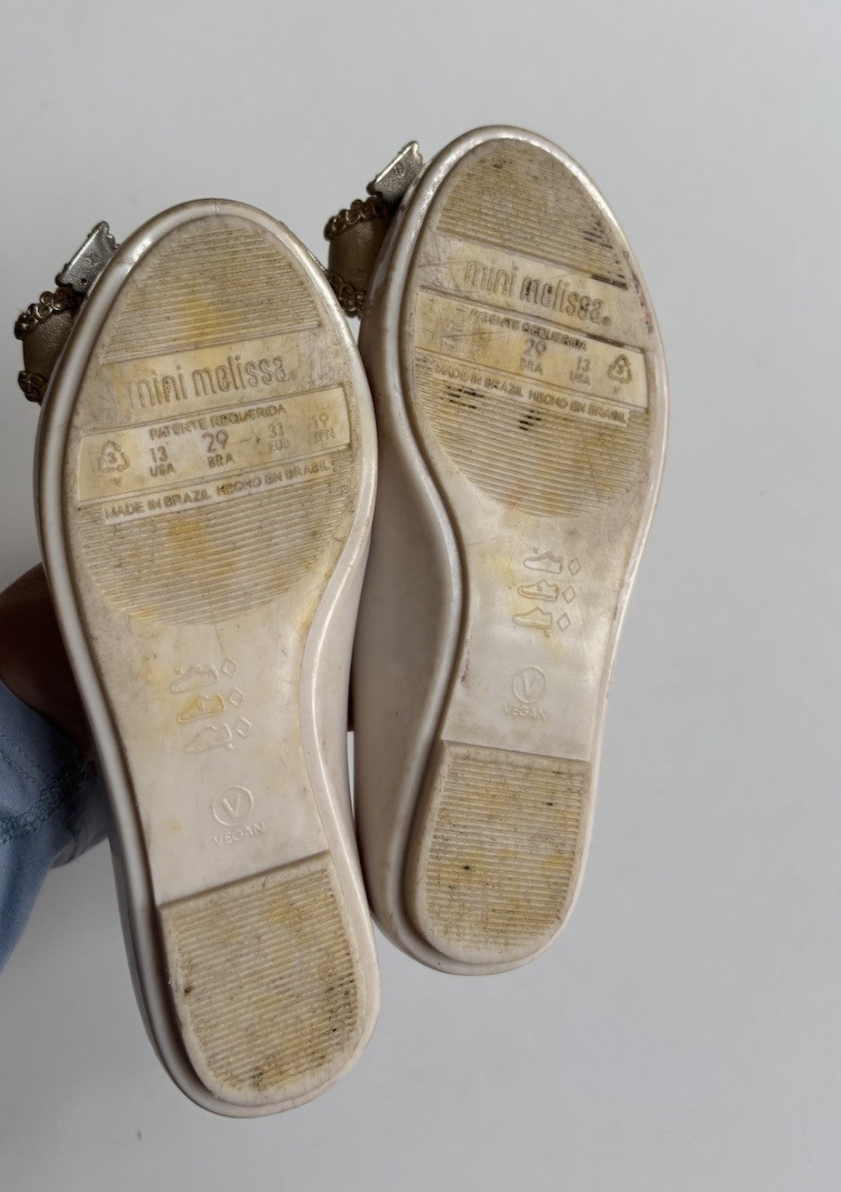 Mini Melissa kids girls size US 13/EUR 31 cream gold bow flat shoes, V