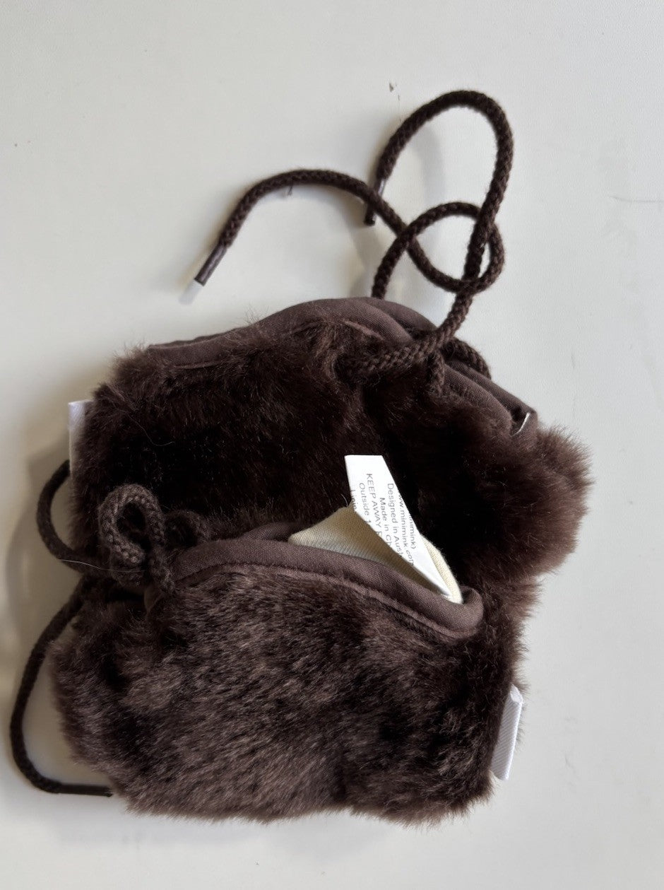 Minimink baby size S dark brown fluffy booties slippers, VGUC