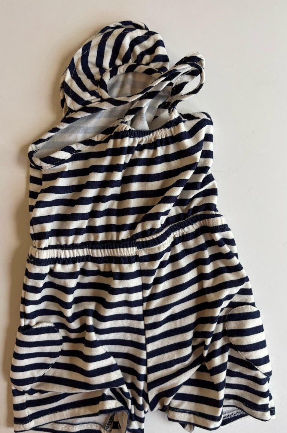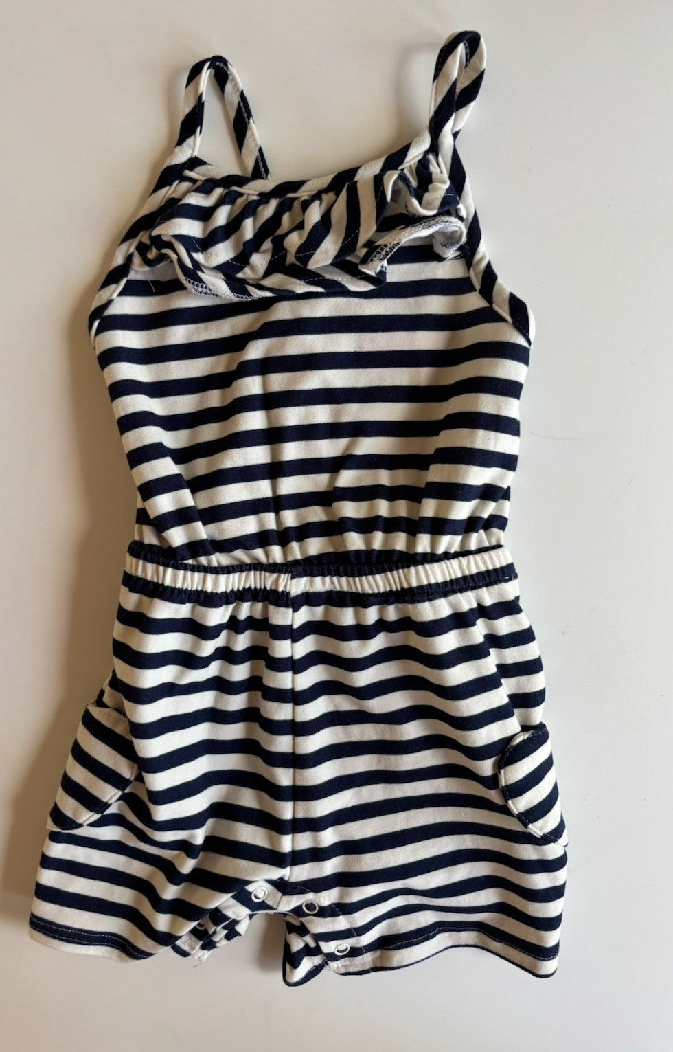 Miniville baby girl size 12-18 months navy blue white stripe romper, VGUC