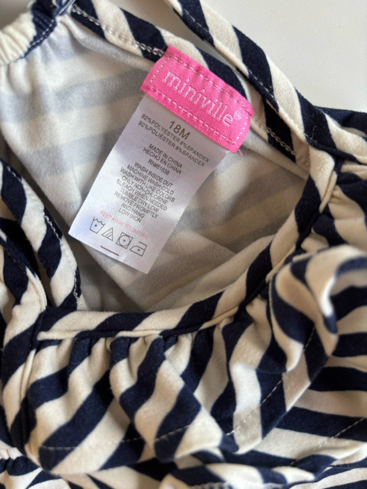 Miniville baby girl size 12-18 months navy blue white stripe romper, V