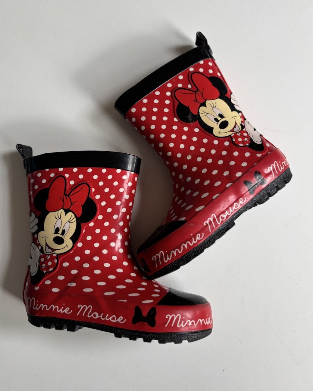 Minnie Mouse kids girls size 6 red white spot gumboots rain boots, VGUC