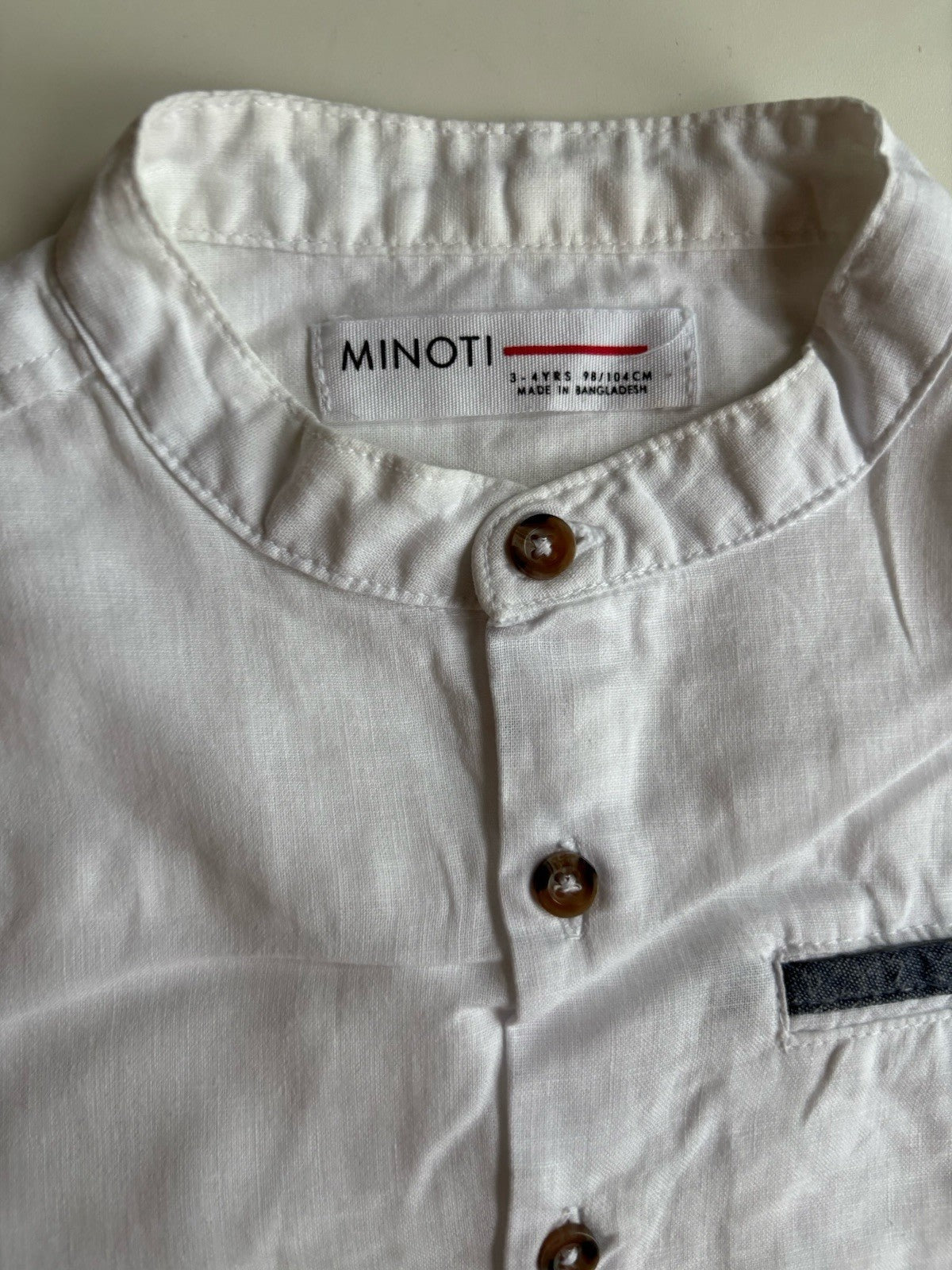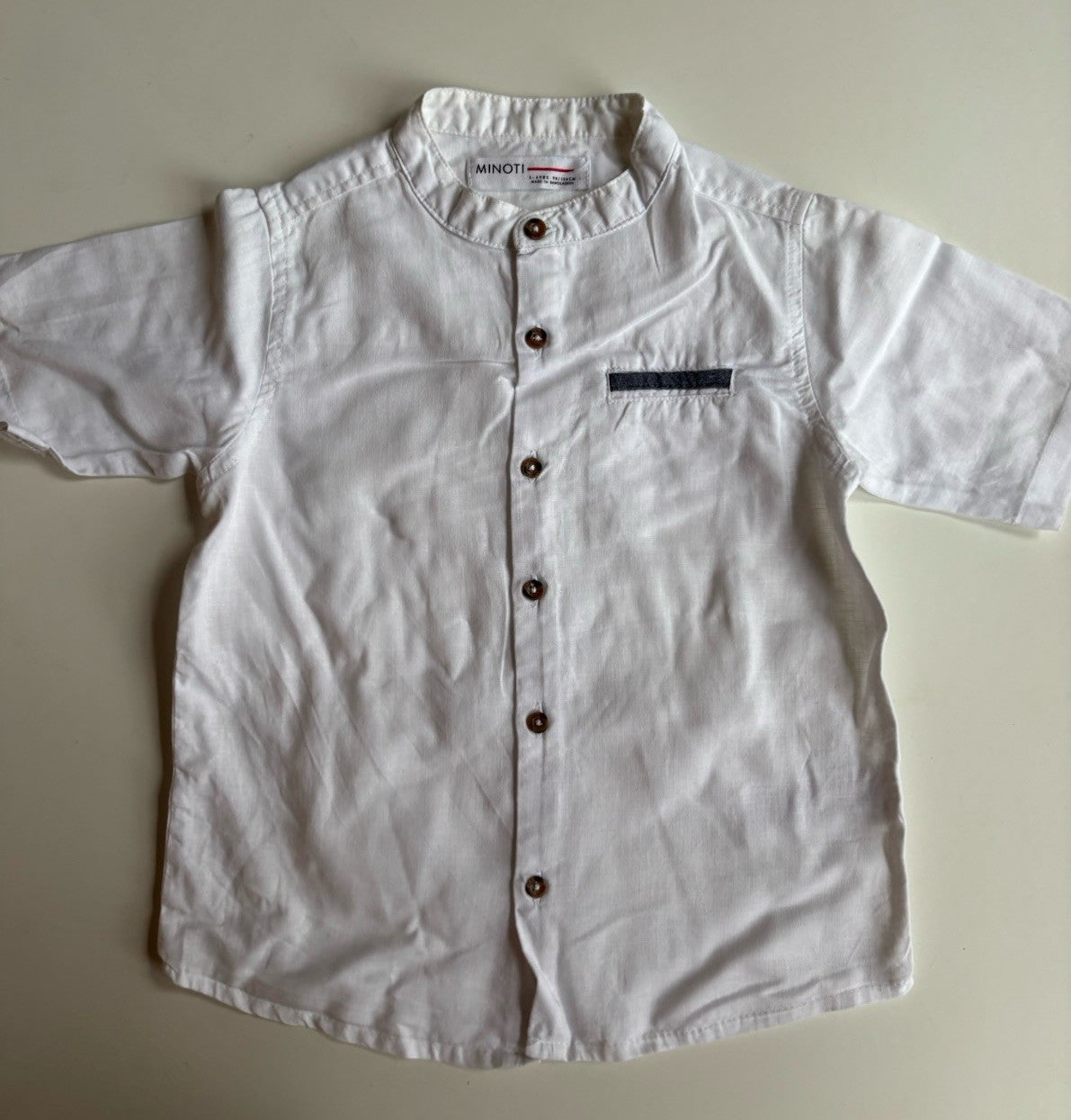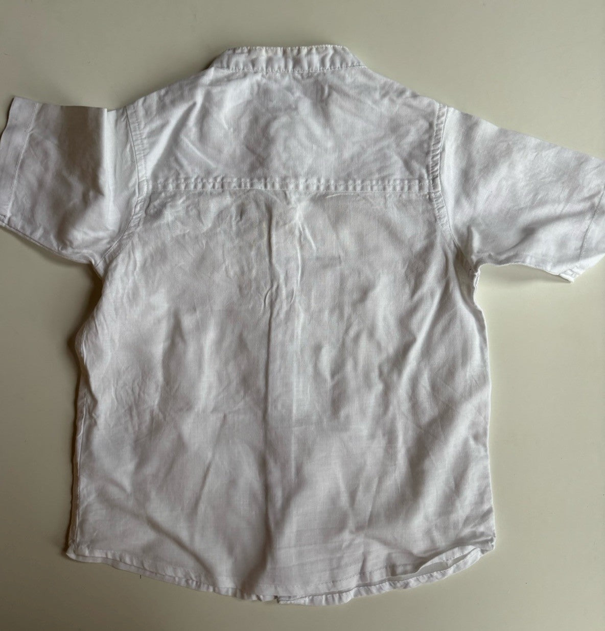 Minoti kids boys toddler size 3-4 years white linen blend shirt, VGUC