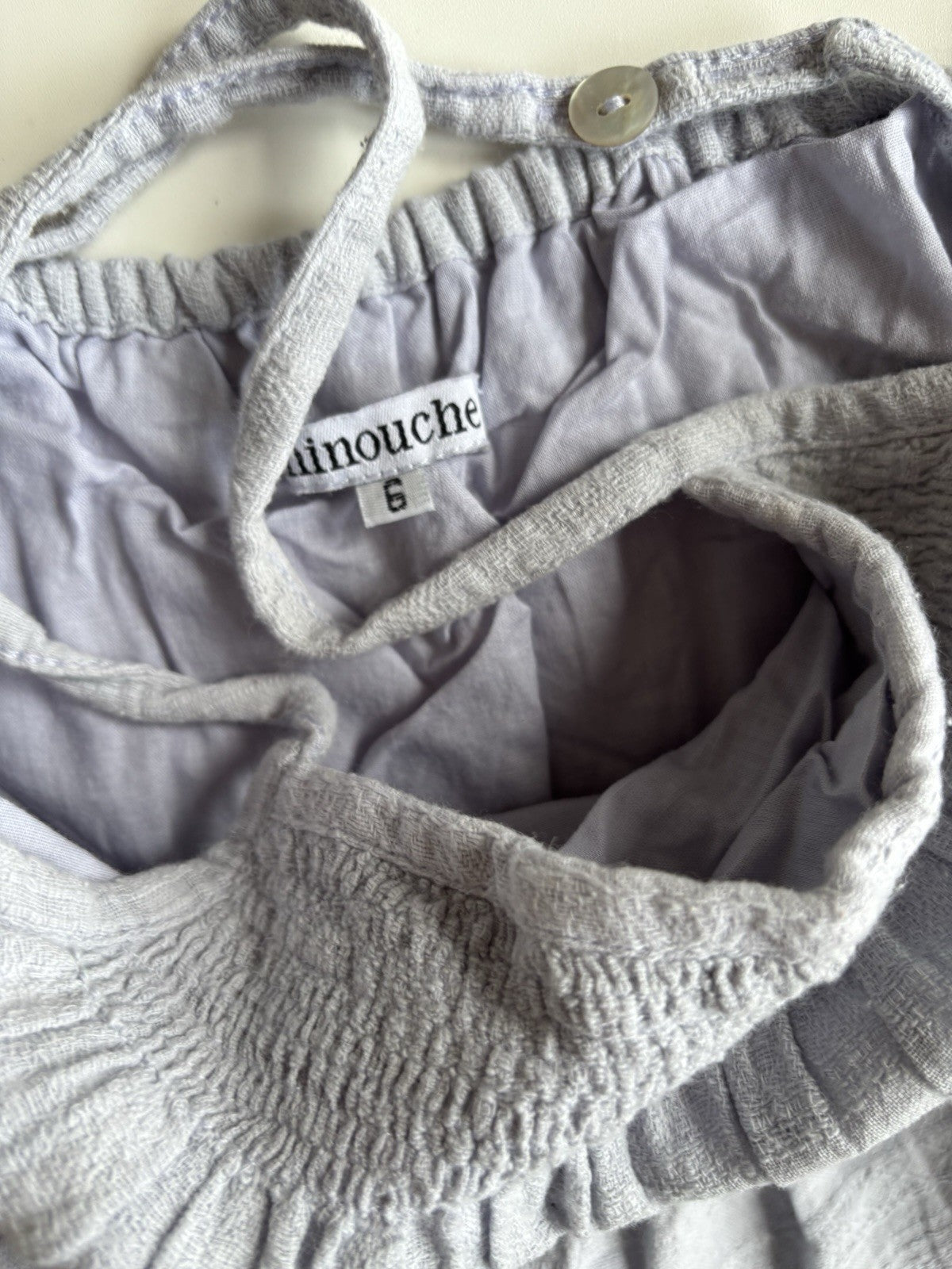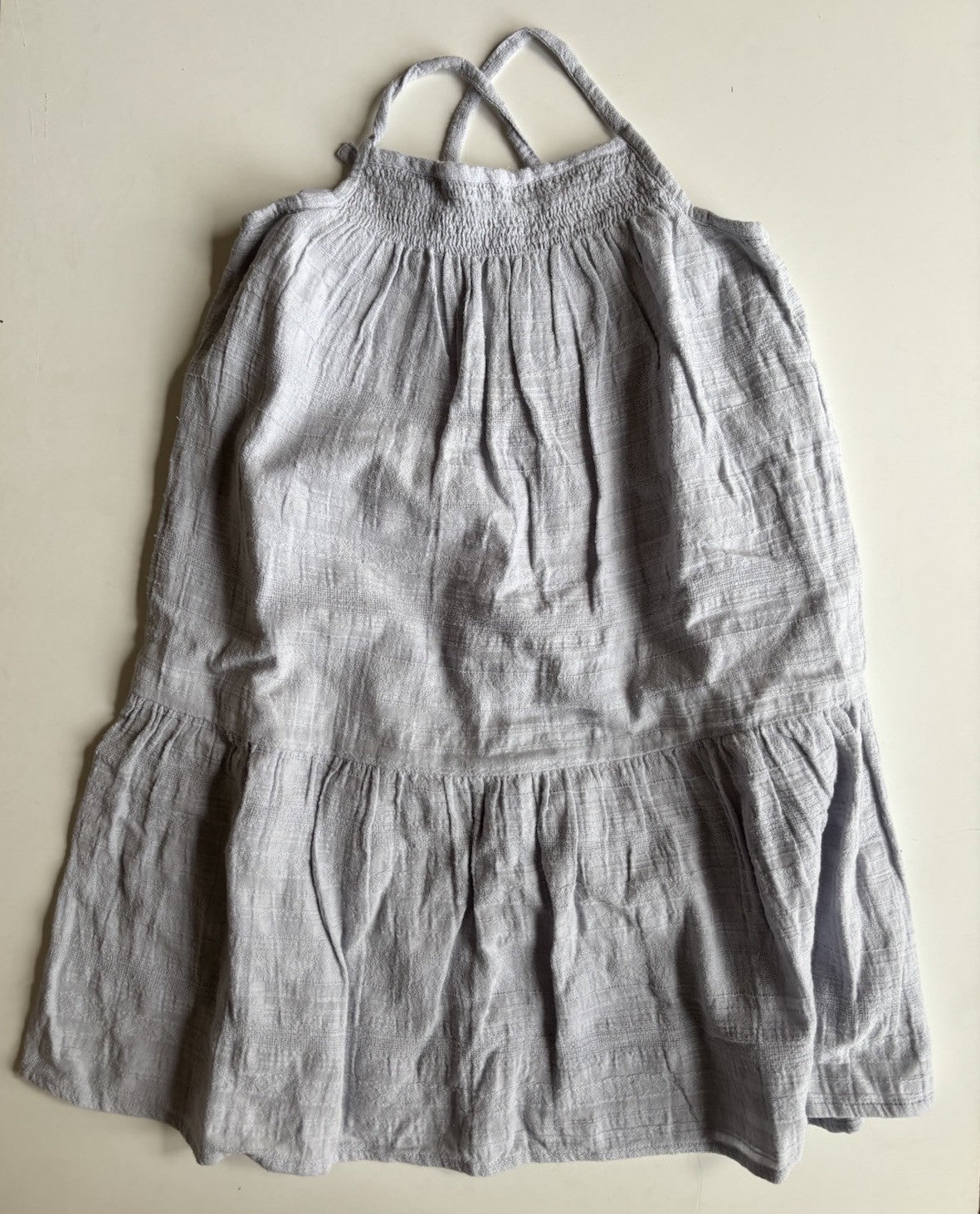 Minouche kids girls size 6 grey textured smocked summer dress, VGUC