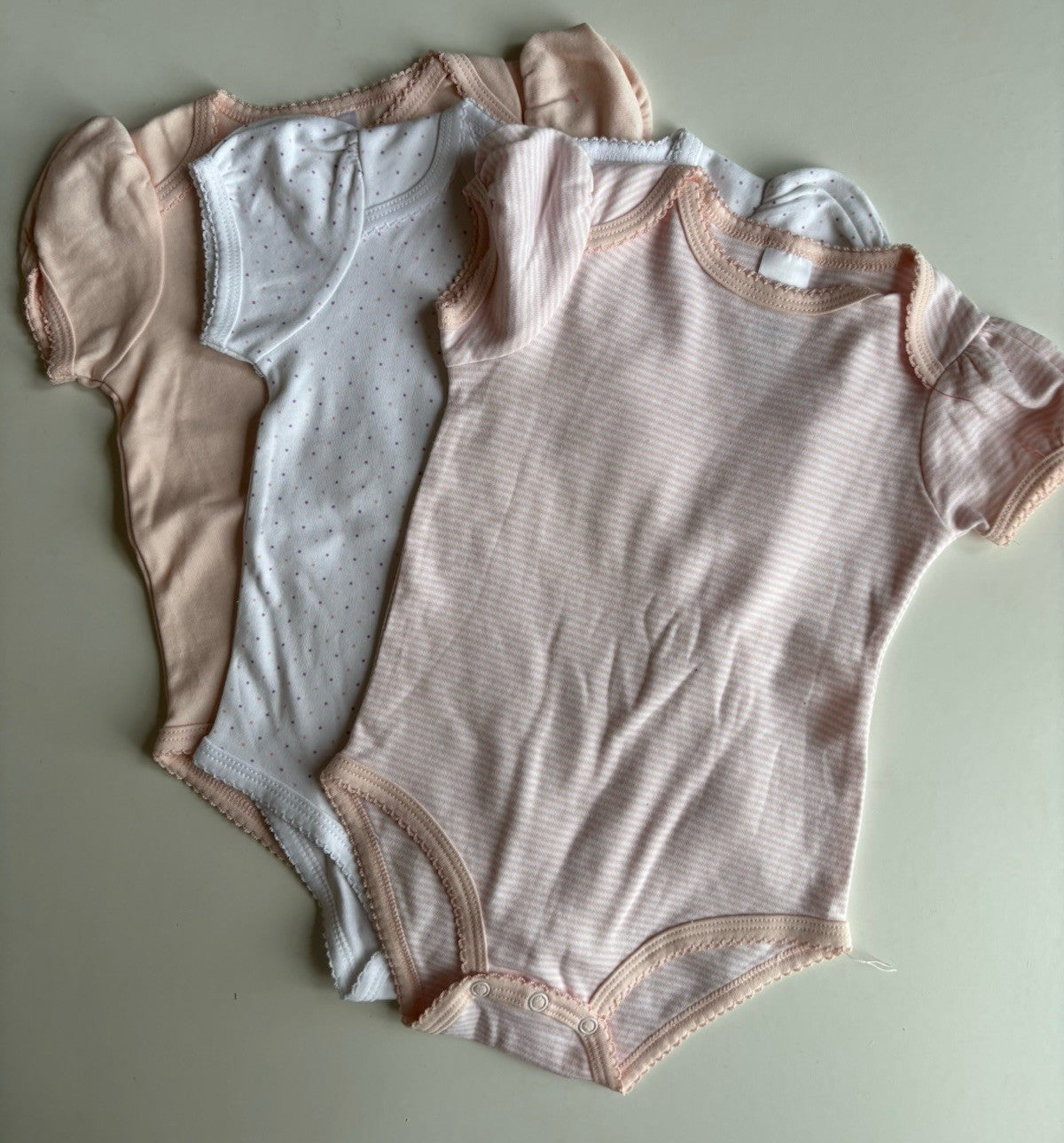 MIX baby girl size 6-9 months pink spot stripe bodysuits x3, EUC