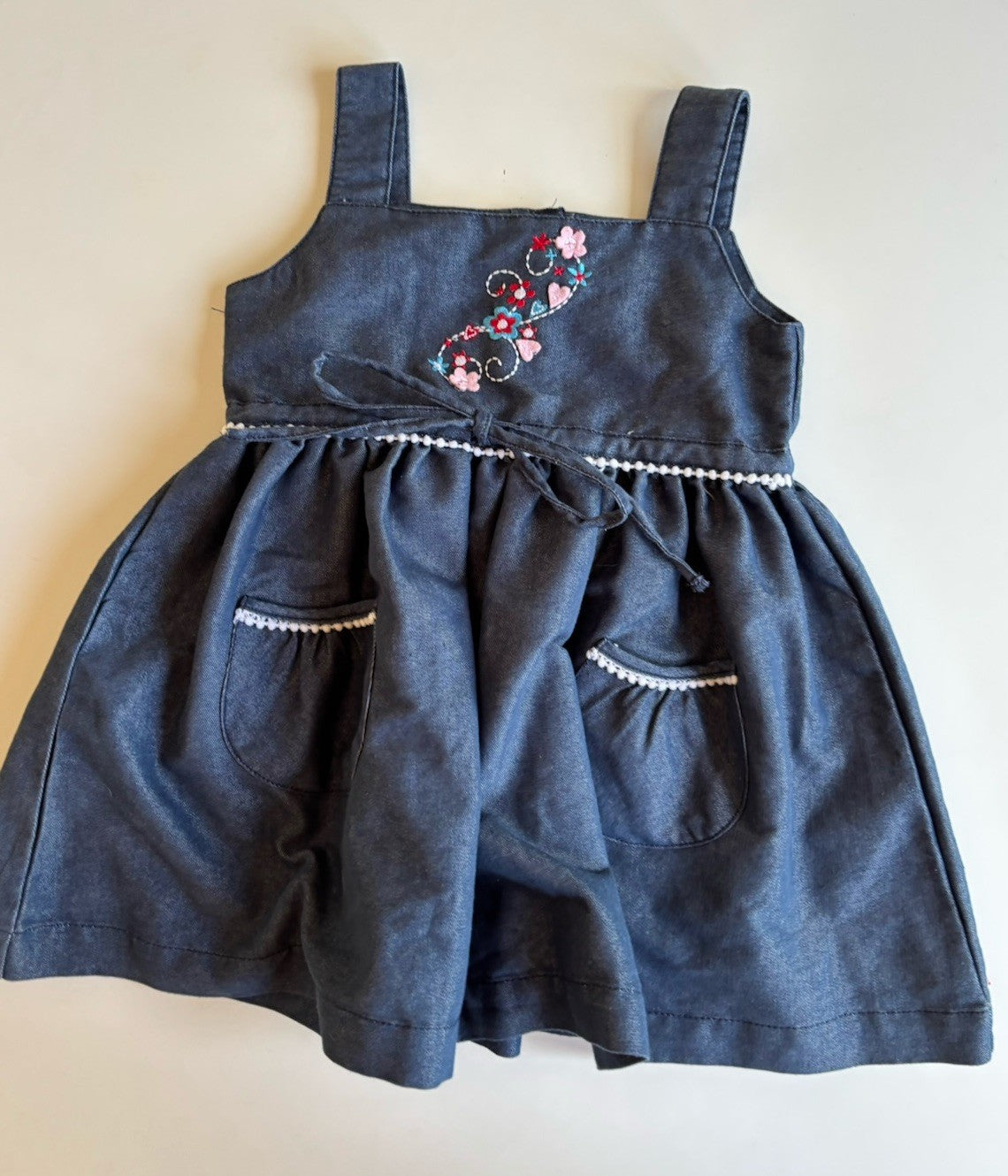 Moda Bimbi kids girls toddler size 2 blue belted pinafore dress, VGUC
