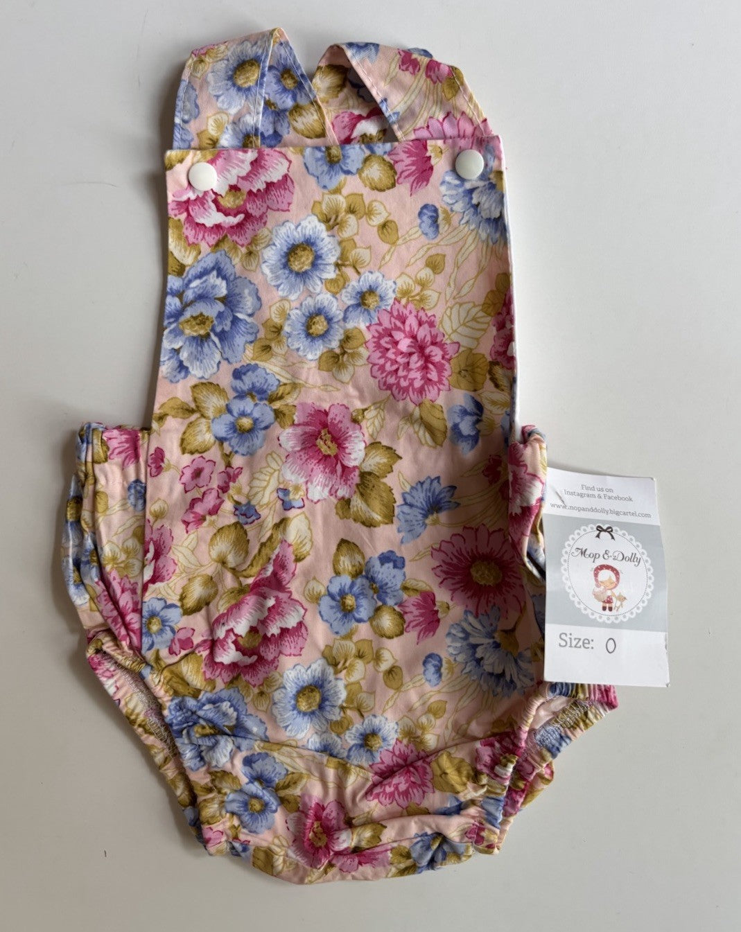 Mop & Dolly handmade baby girl size 6-12 months pink floral romper, BN